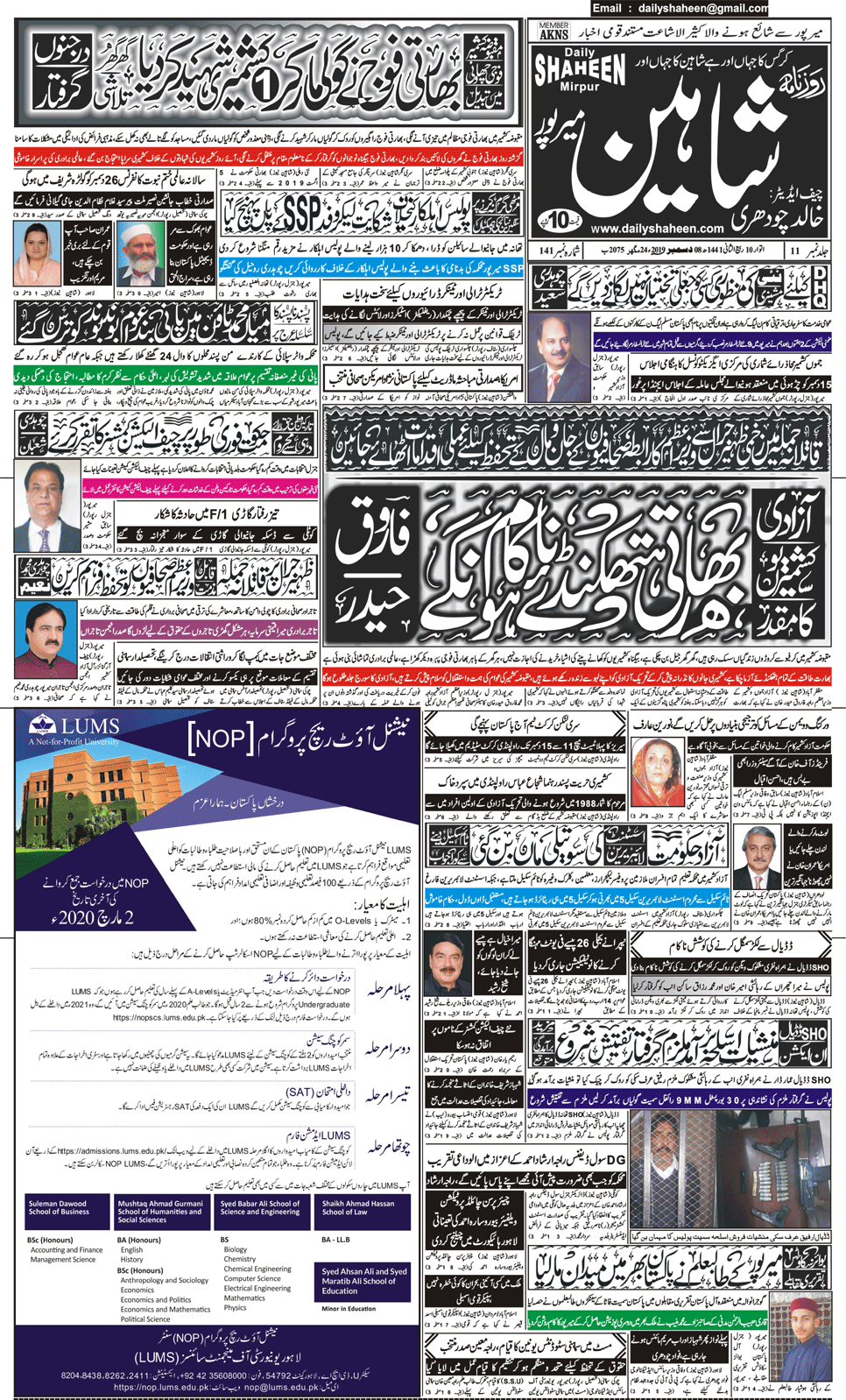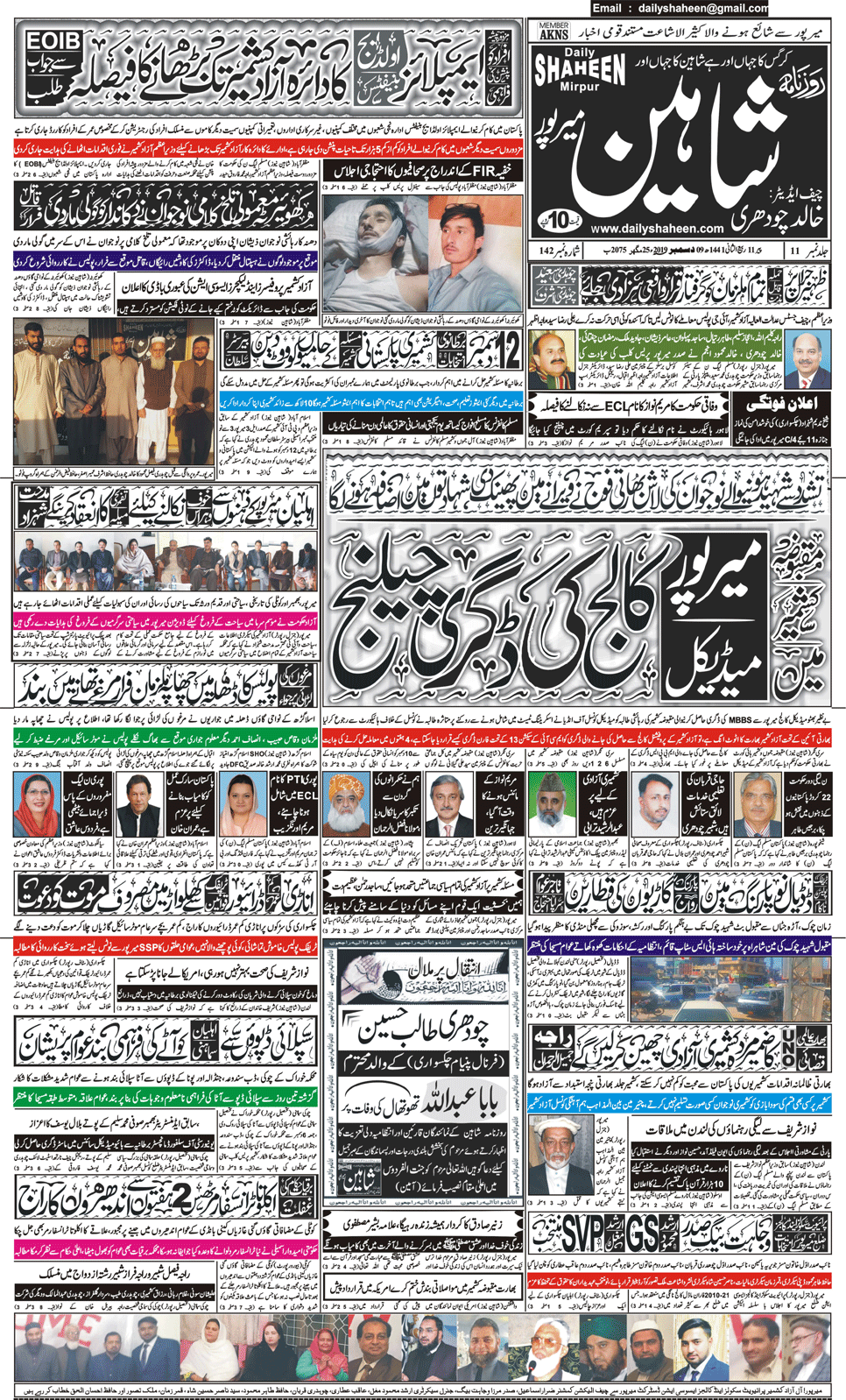 Daily Shaheen Mirpur – Latest news from Mirpur & Azad Kashmir | Mirpur News, Mirpur Newspaper