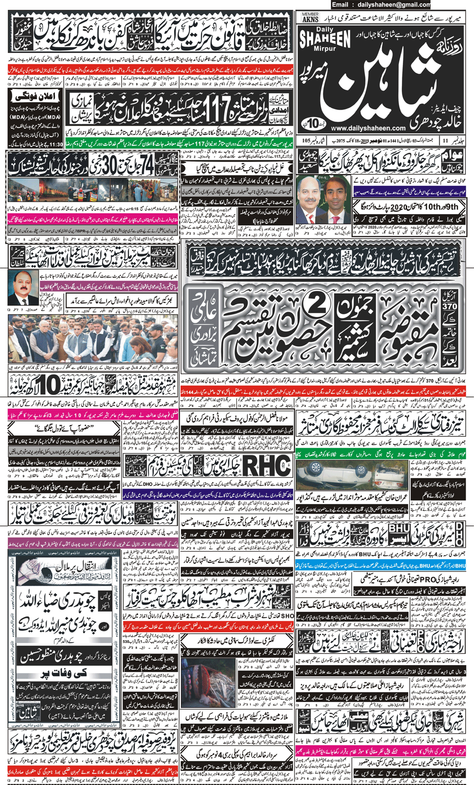 Daily Shaheen Mirpur – Latest news from Mirpur & Azad Kashmir | Mirpur News, Mirpur Newspaper