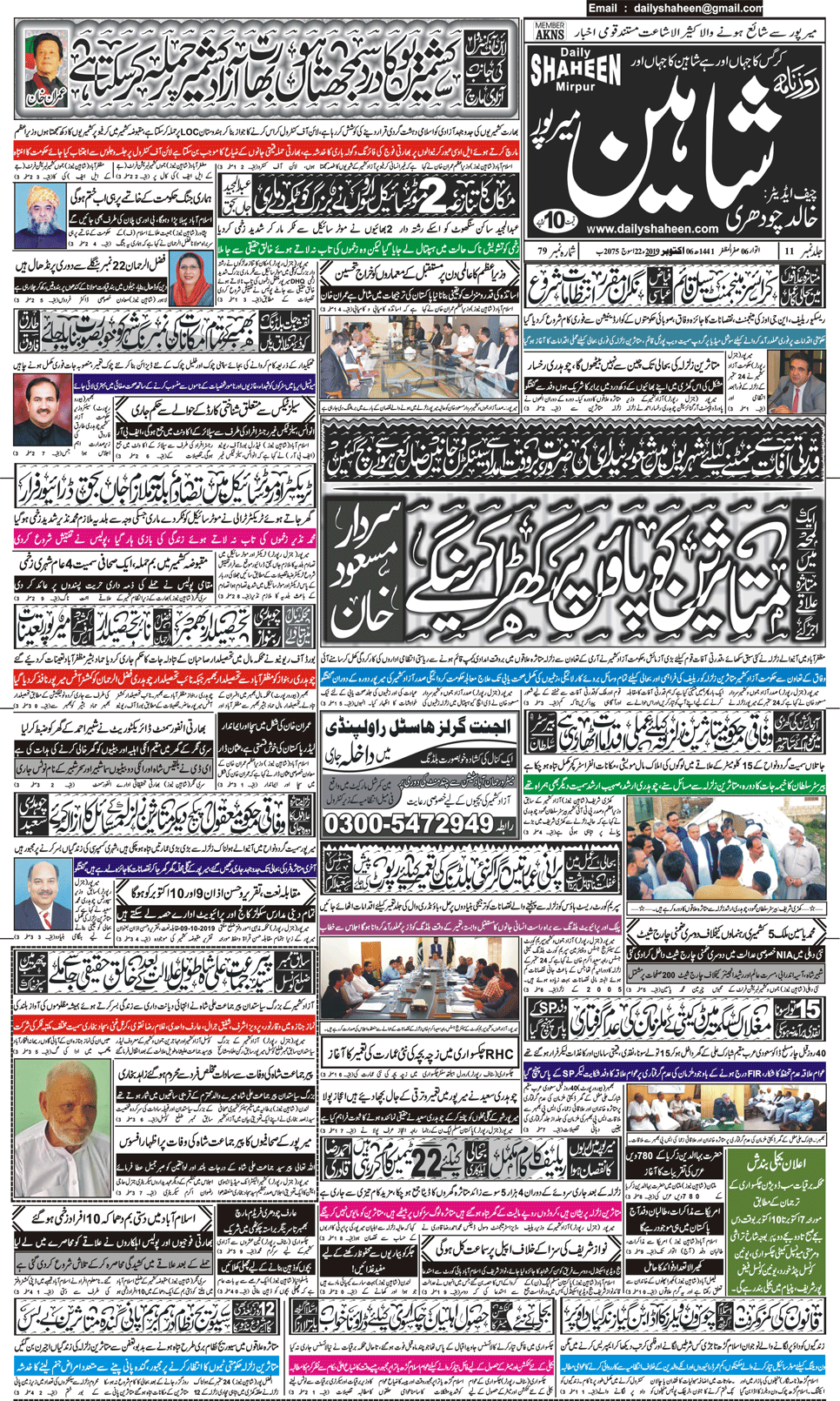 Daily Shaheen Mirpur – Latest news from Mirpur & Azad Kashmir | Mirpur News, Mirpur Newspaper