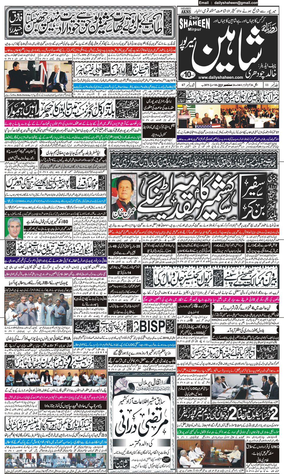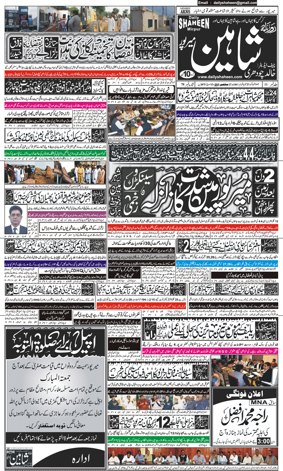 Daily Shaheen Mirpur – Latest news from Mirpur & Azad Kashmir | Mirpur News, Mirpur Newspaper