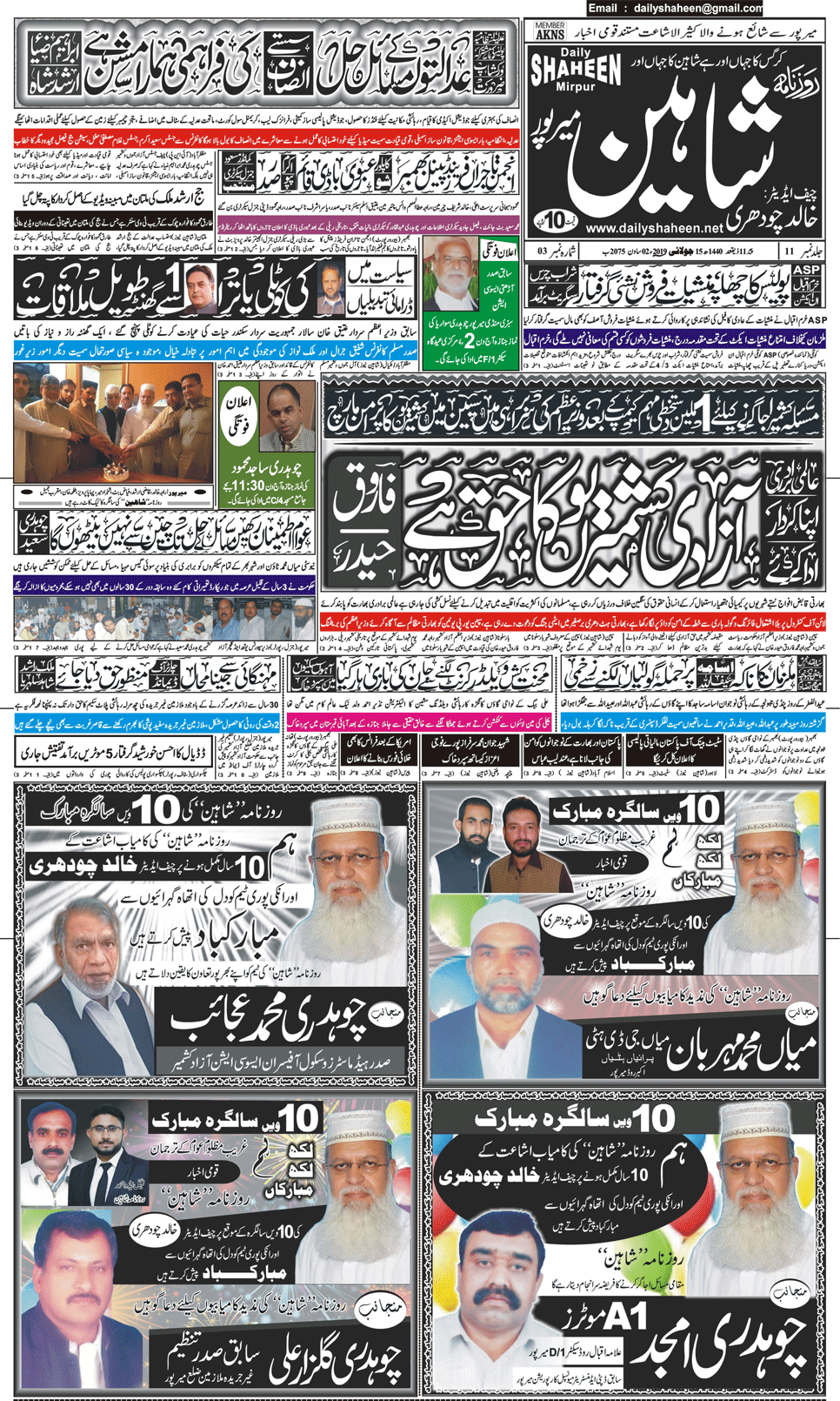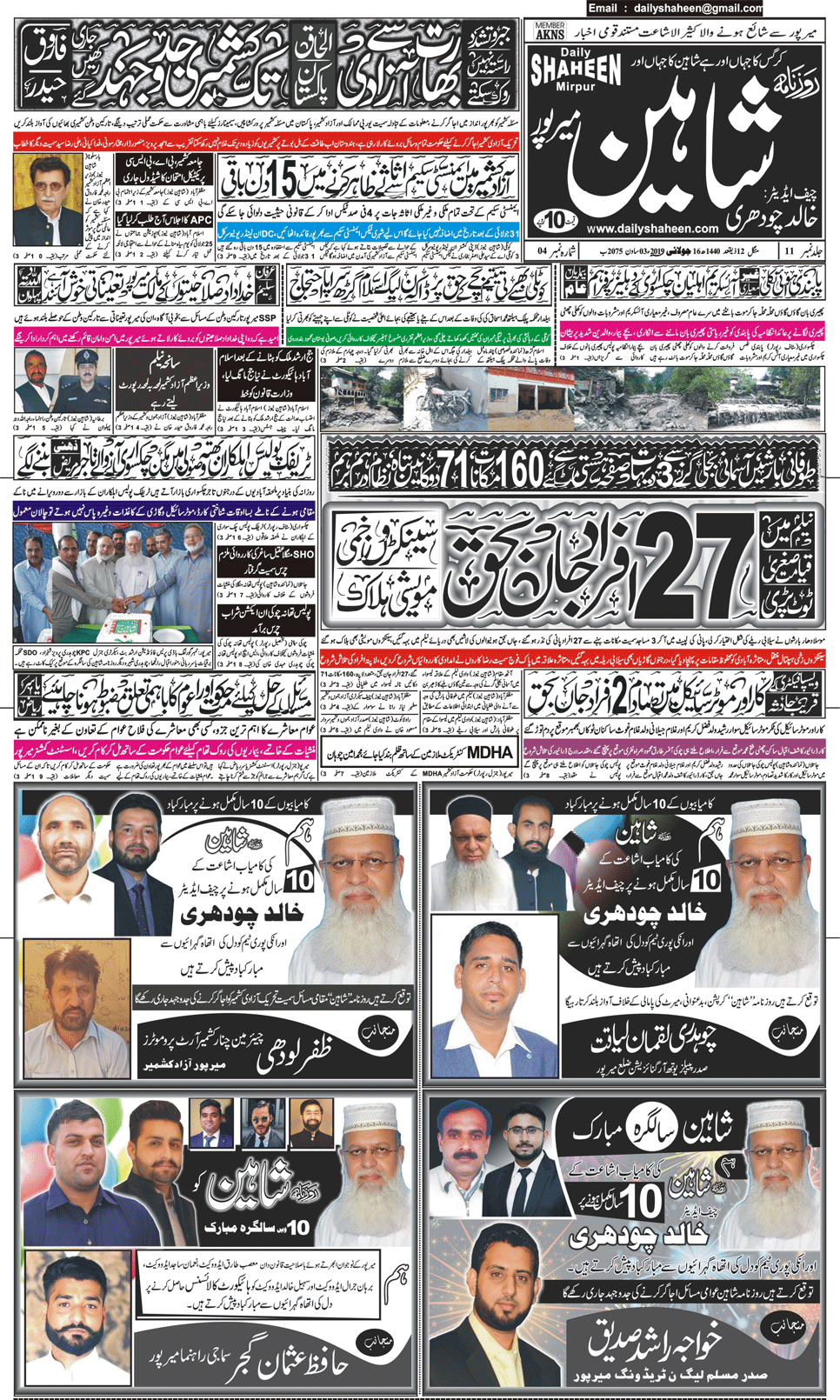 Daily Shaheen Mirpur – Latest news from Mirpur & Azad Kashmir | Mirpur News, Mirpur Newspaper