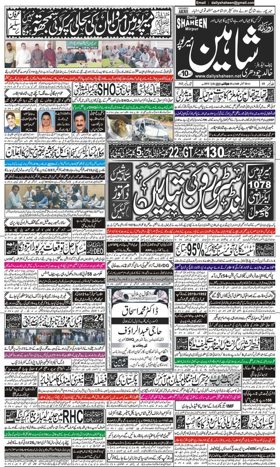 Daily Shaheen Mirpur – Latest news from Mirpur & Azad Kashmir | Mirpur News, Mirpur Newspaper