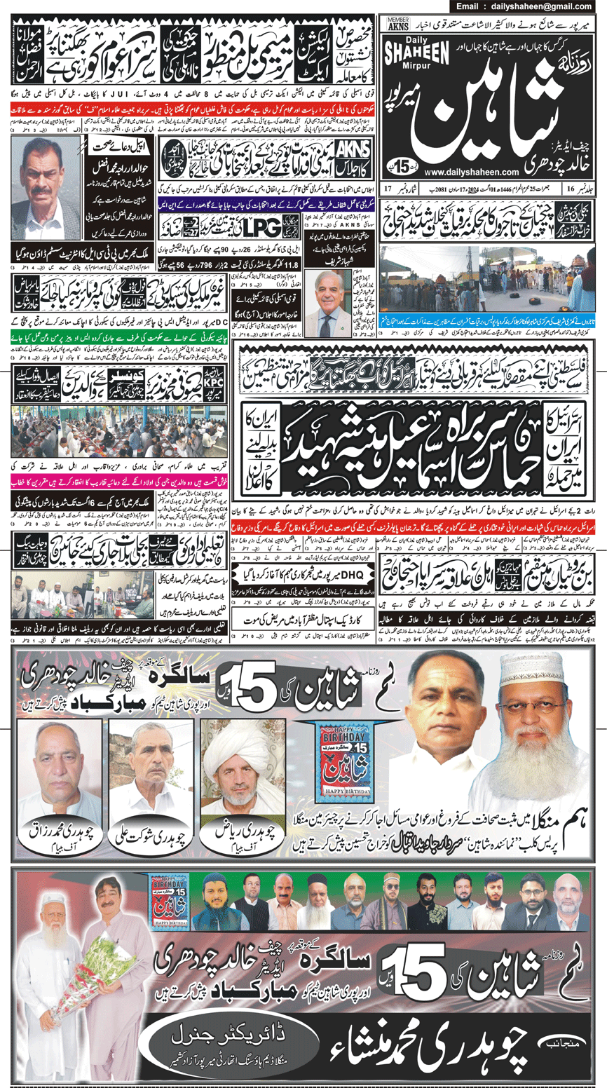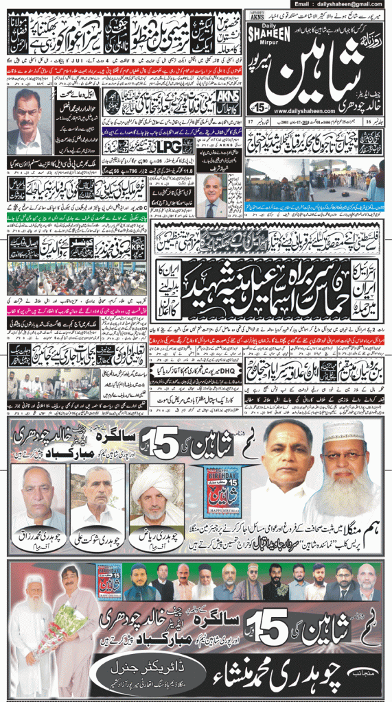 Daily Shaheen Mirpur – Latest news from Mirpur & Azad Kashmir | Mirpur News, Mirpur Newspaper