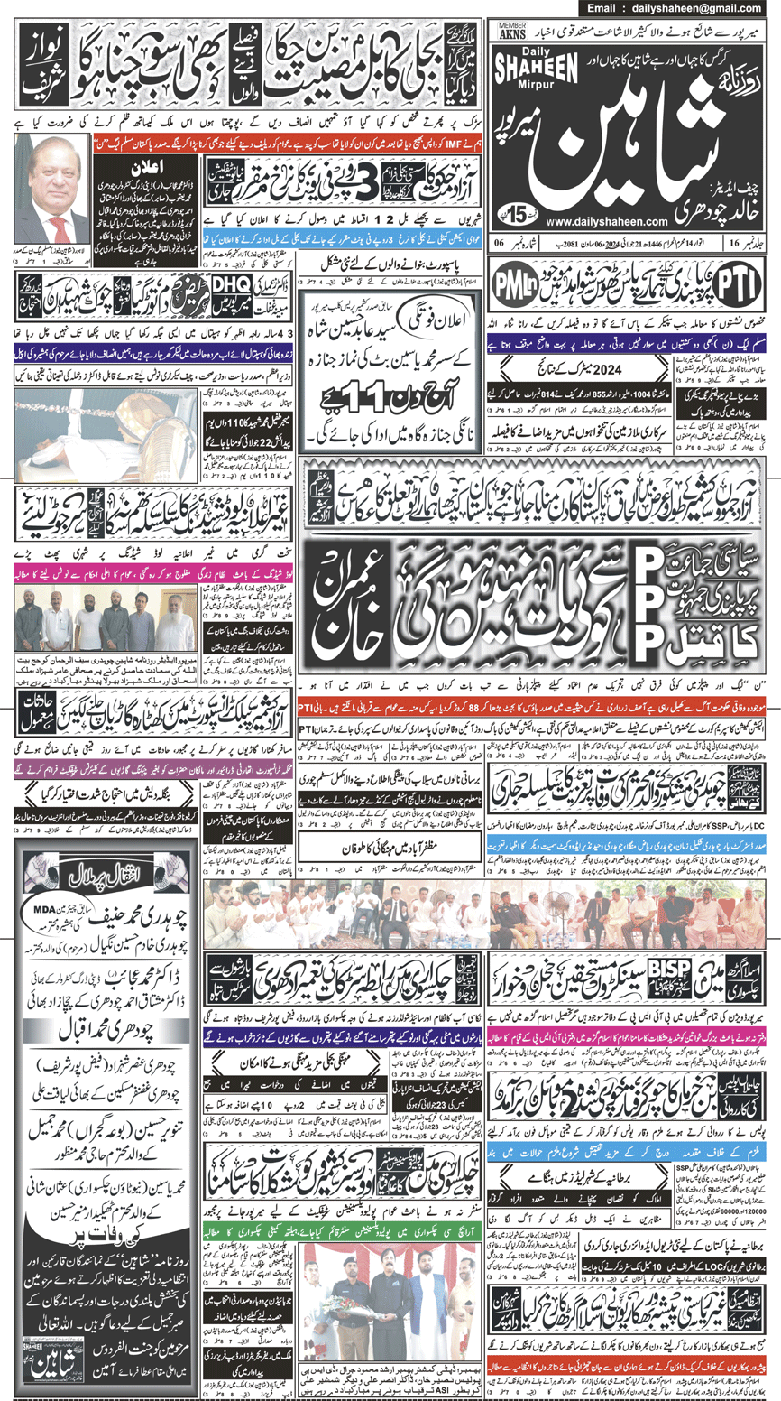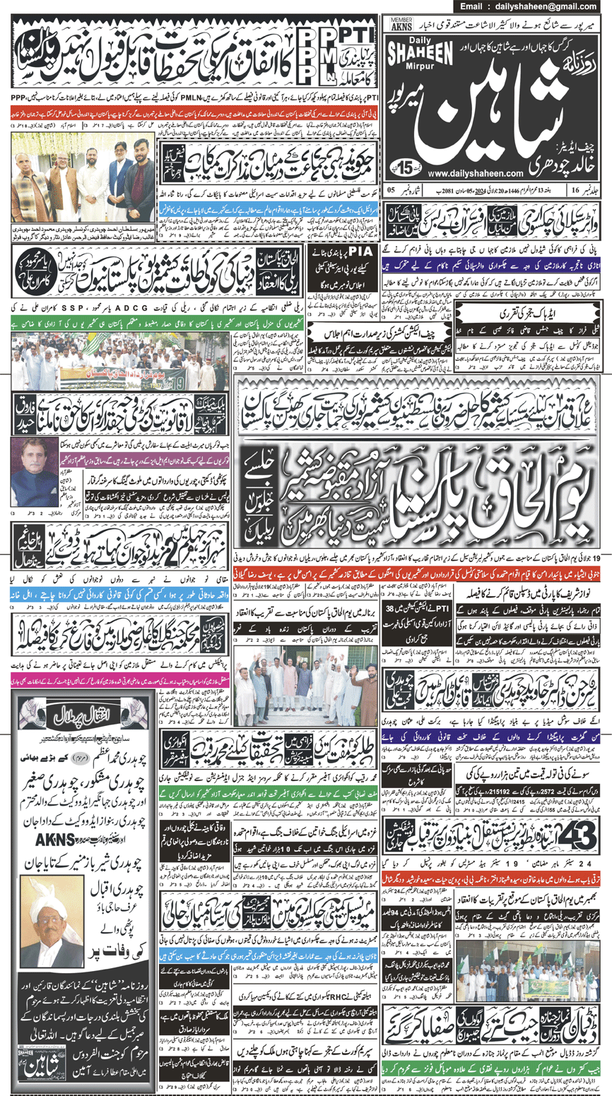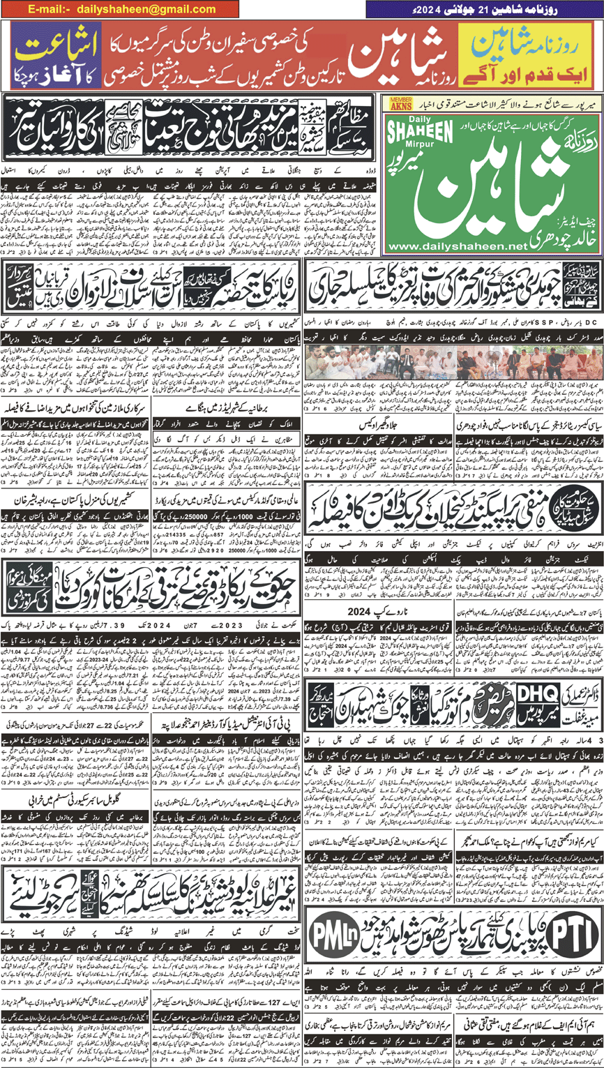 Daily Shaheen Mirpur – Latest news from Mirpur & Azad Kashmir | Mirpur News, Mirpur Newspaper
