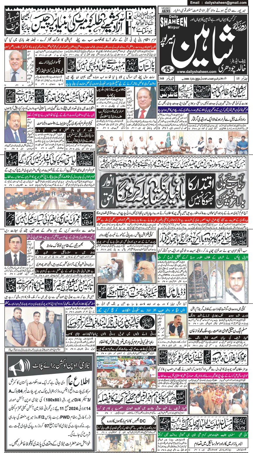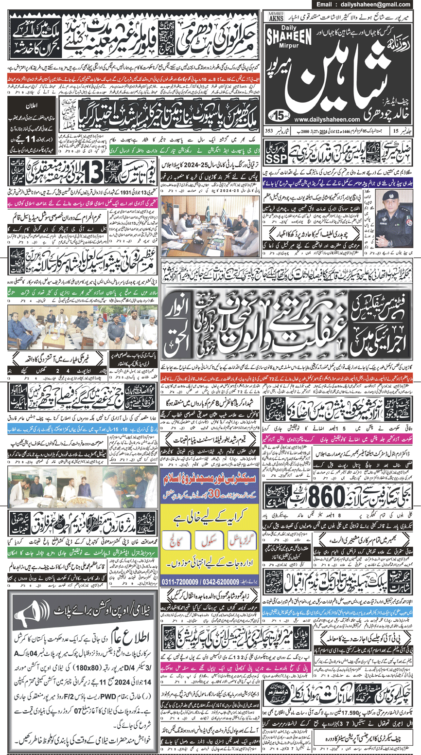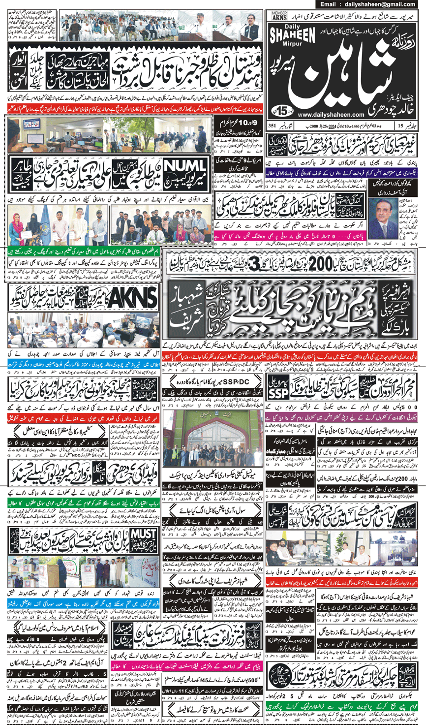 Daily Shaheen Mirpur – Latest news from Mirpur & Azad Kashmir | Mirpur News, Mirpur Newspaper
