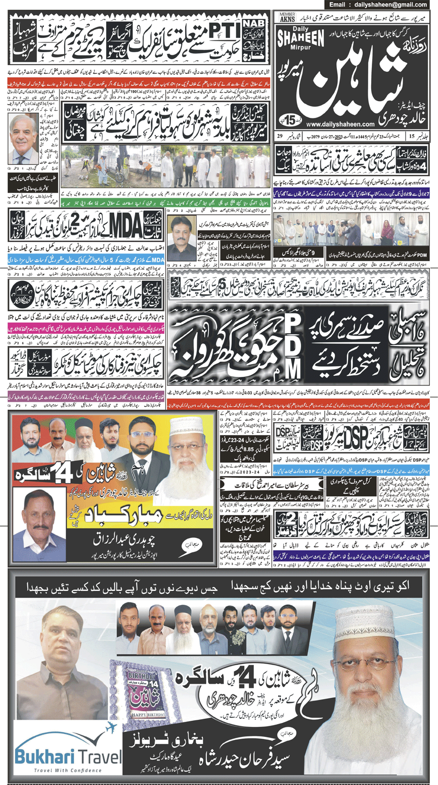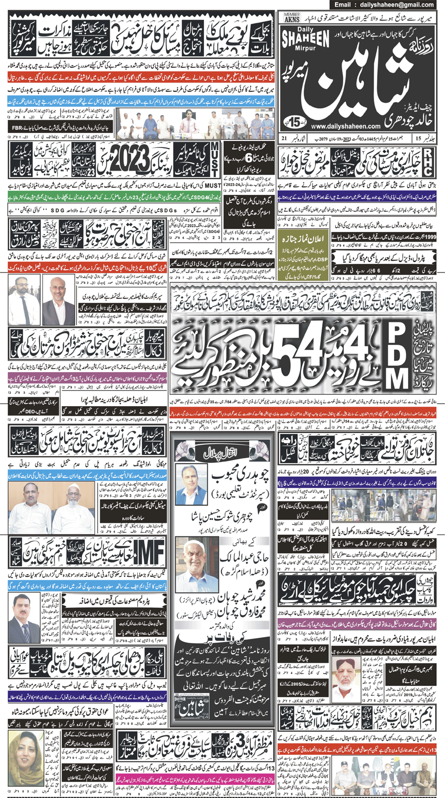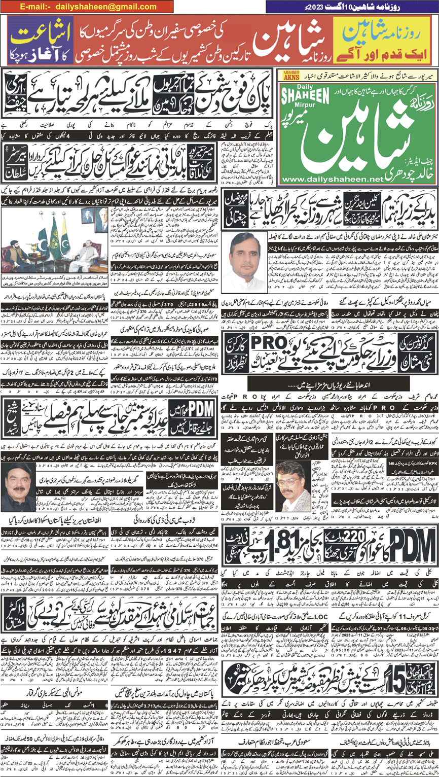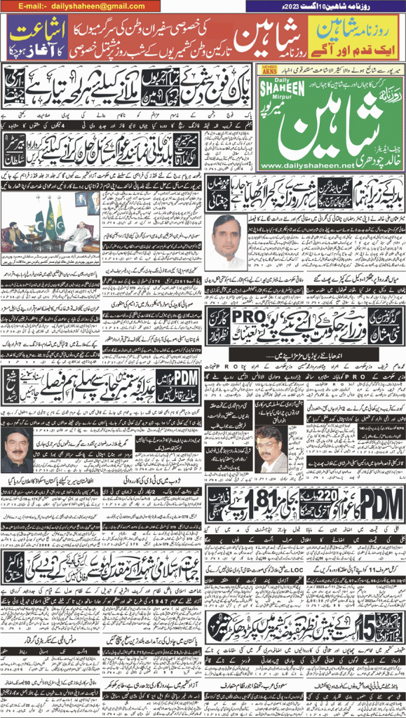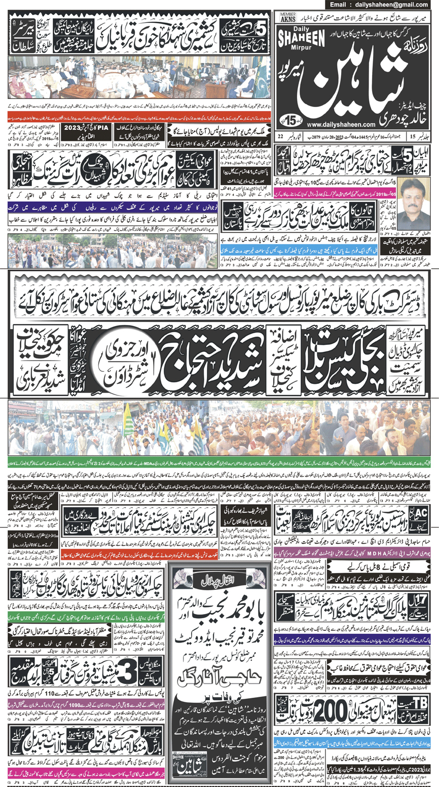 Daily Shaheen Mirpur – Latest news from Mirpur & Azad Kashmir | Mirpur News, Mirpur Newspaper