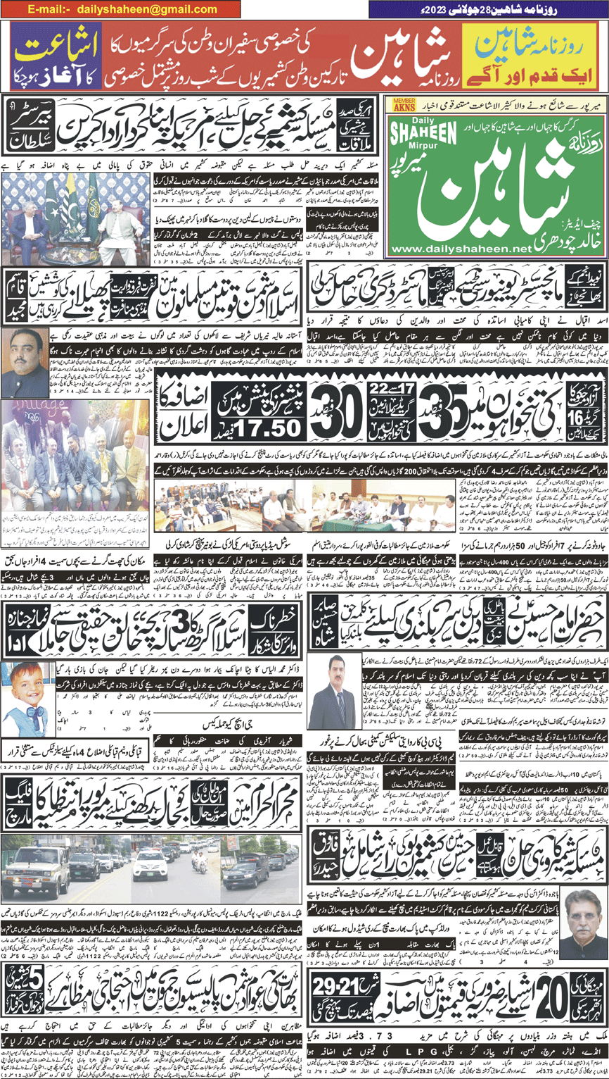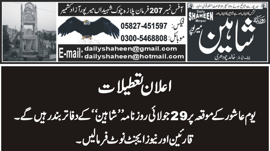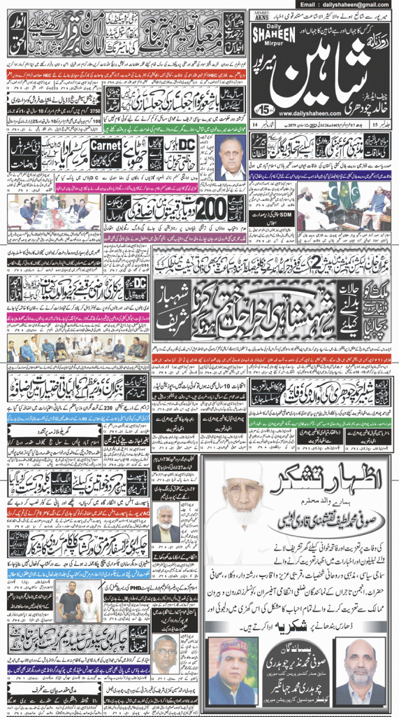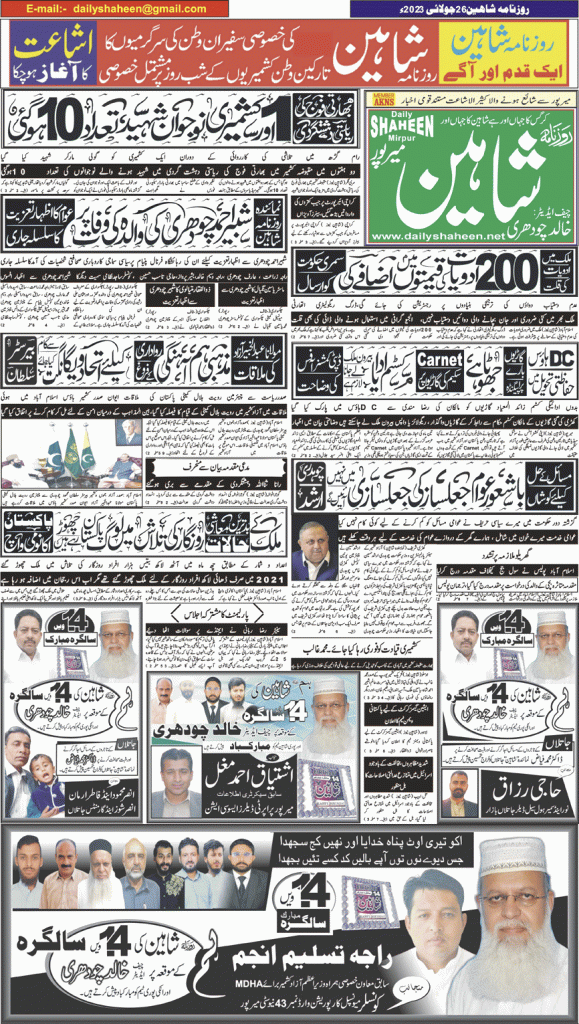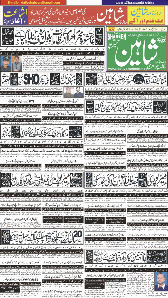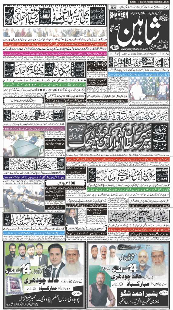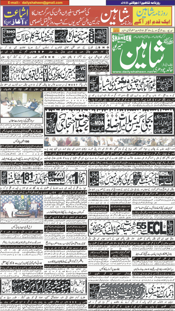 Daily Shaheen Mirpur – Latest news from Mirpur & Azad Kashmir | Mirpur News, Mirpur Newspaper