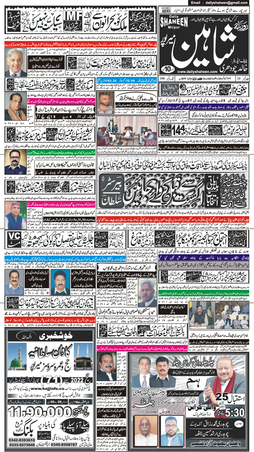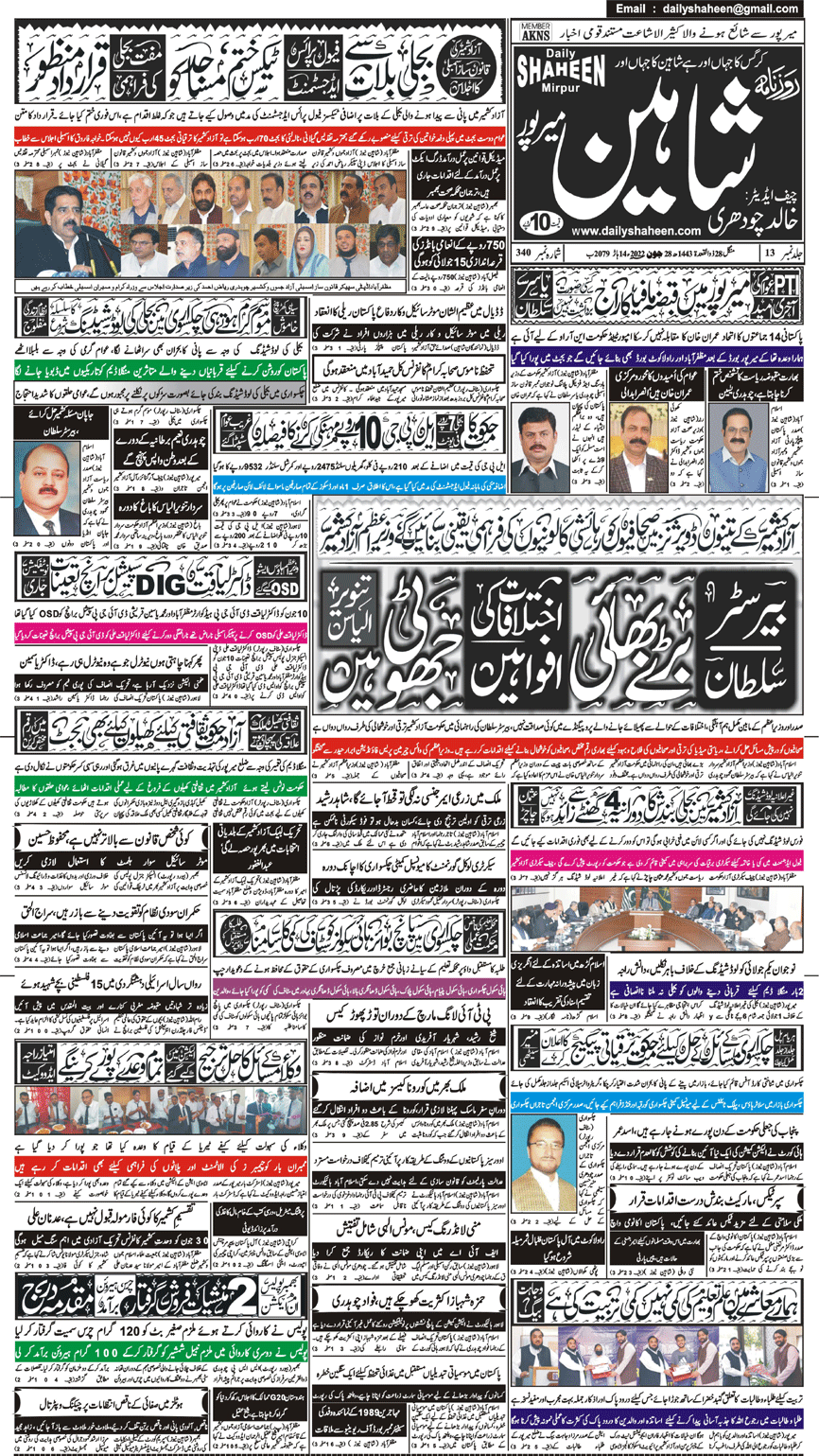 Daily Shaheen Mirpur – Latest news from Mirpur & Azad Kashmir | Mirpur News, Mirpur Newspaper