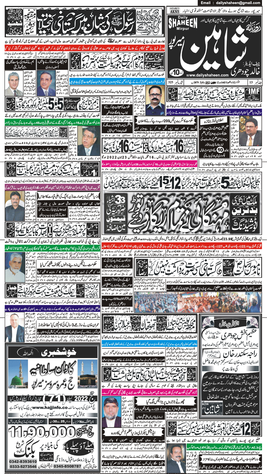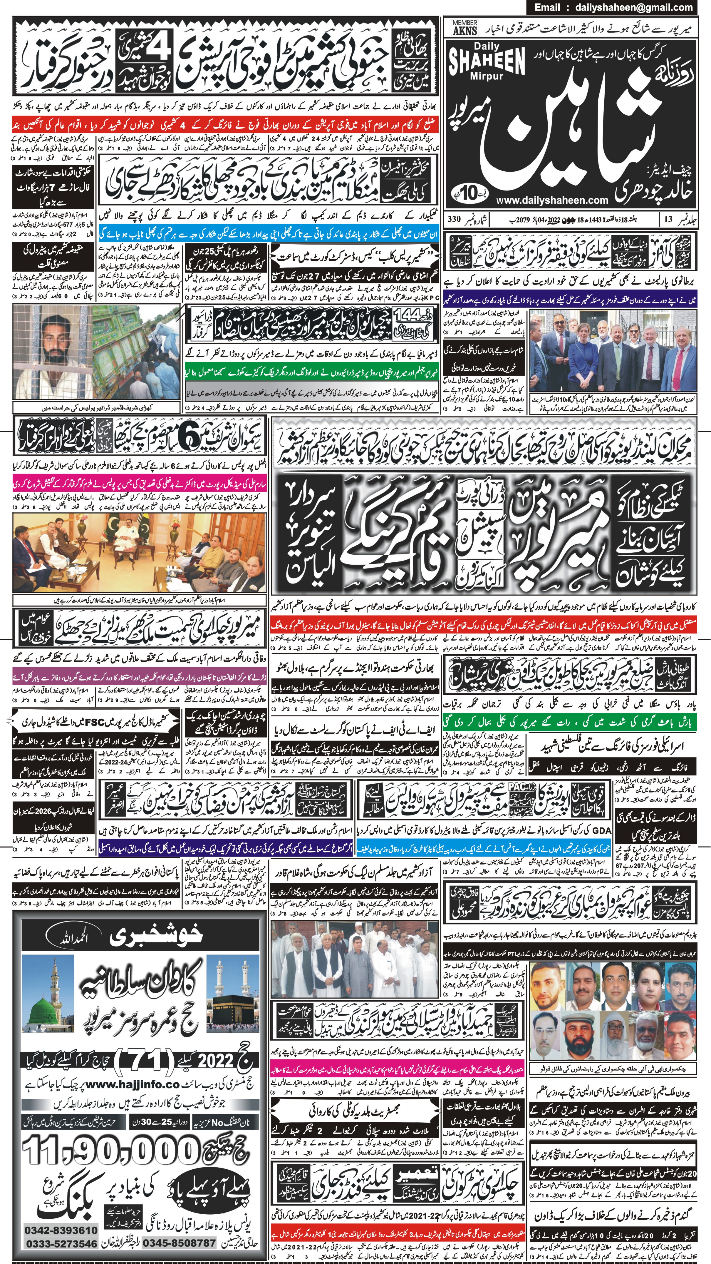 Daily Shaheen Mirpur – Latest news from Mirpur & Azad Kashmir | Mirpur News, Mirpur Newspaper