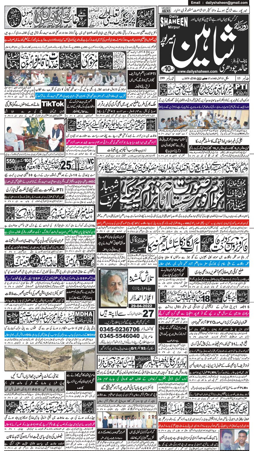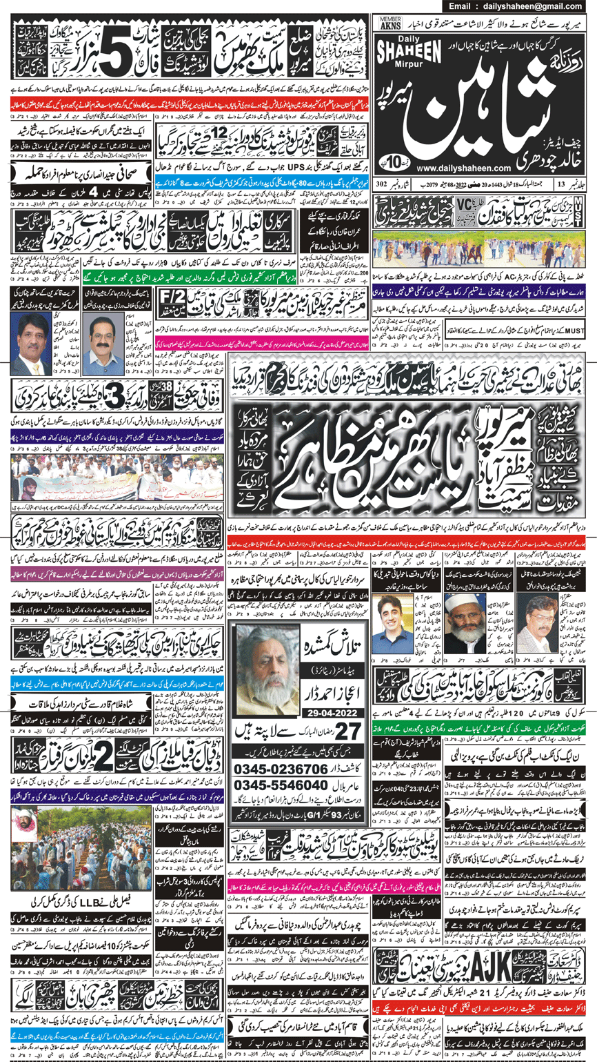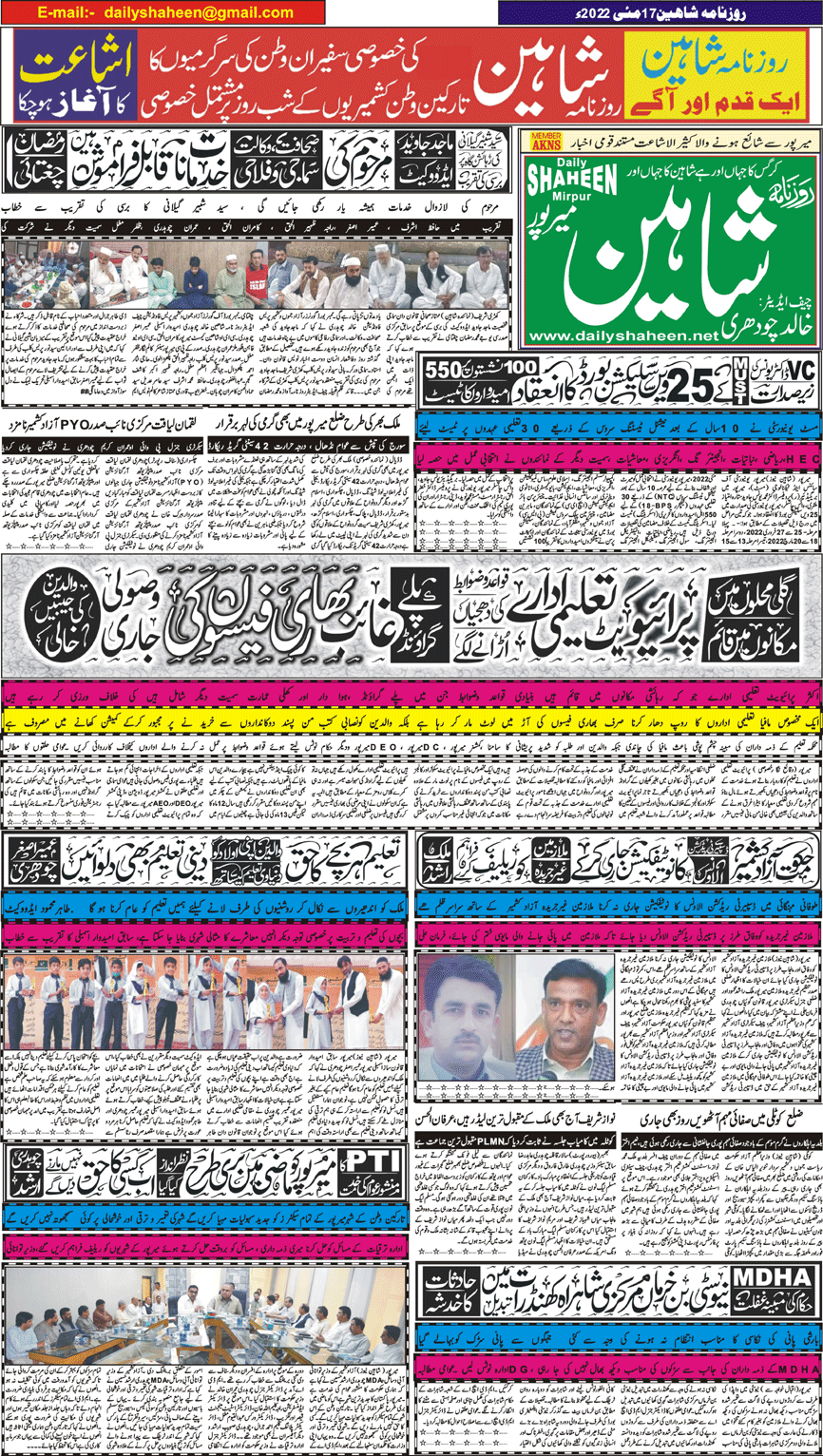 Daily Shaheen Mirpur – Latest news from Mirpur & Azad Kashmir | Mirpur News, Mirpur Newspaper