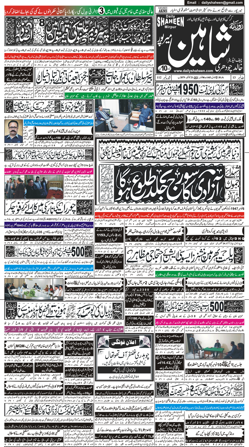 Daily Shaheen Mirpur – Latest news from Mirpur & Azad Kashmir | Mirpur News, Mirpur Newspaper