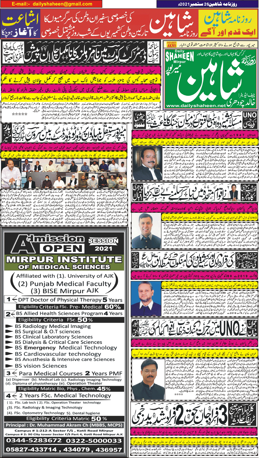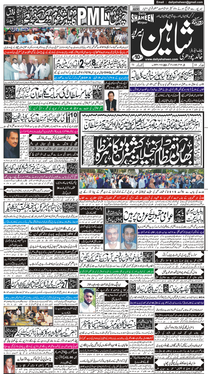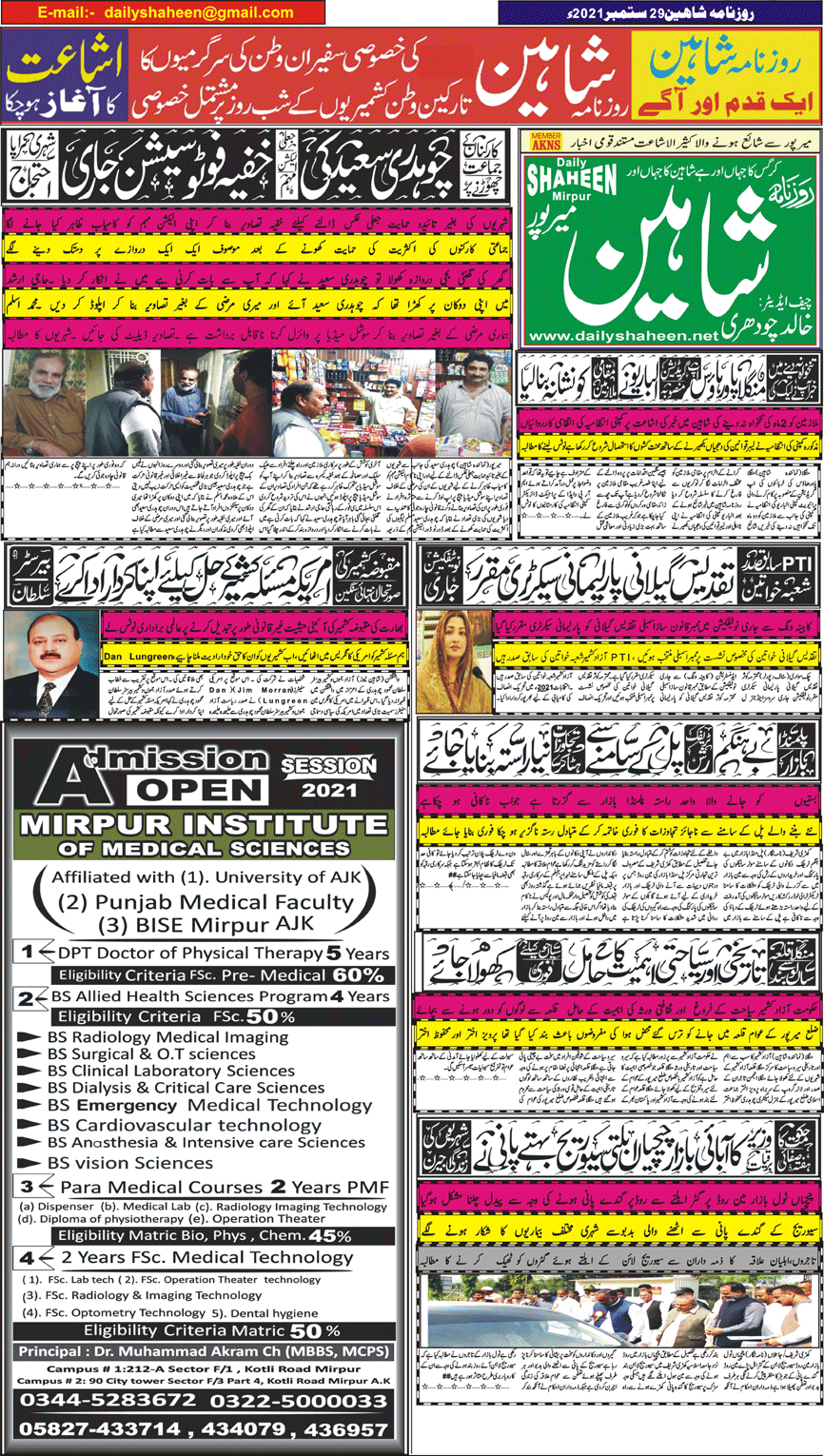 Daily Shaheen Mirpur – Latest news from Mirpur & Azad Kashmir | Mirpur News, Mirpur Newspaper