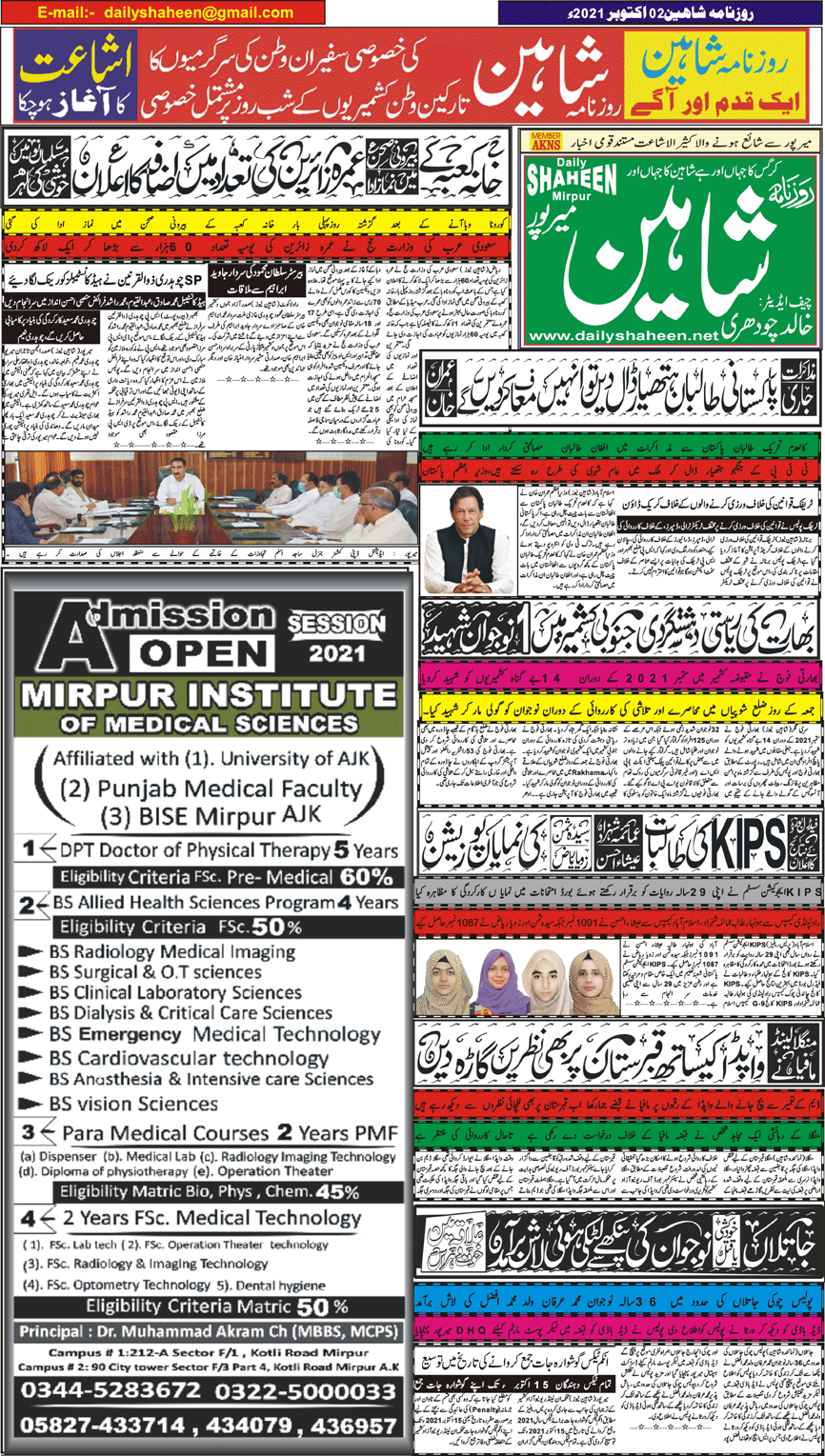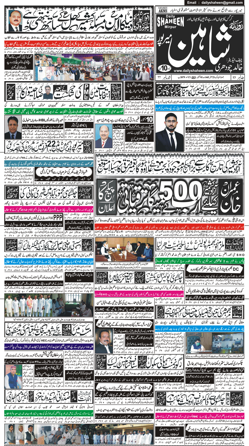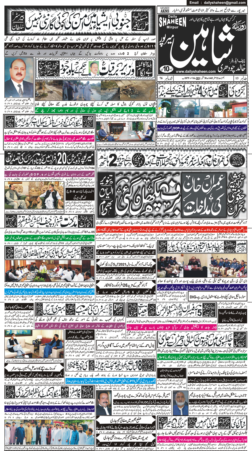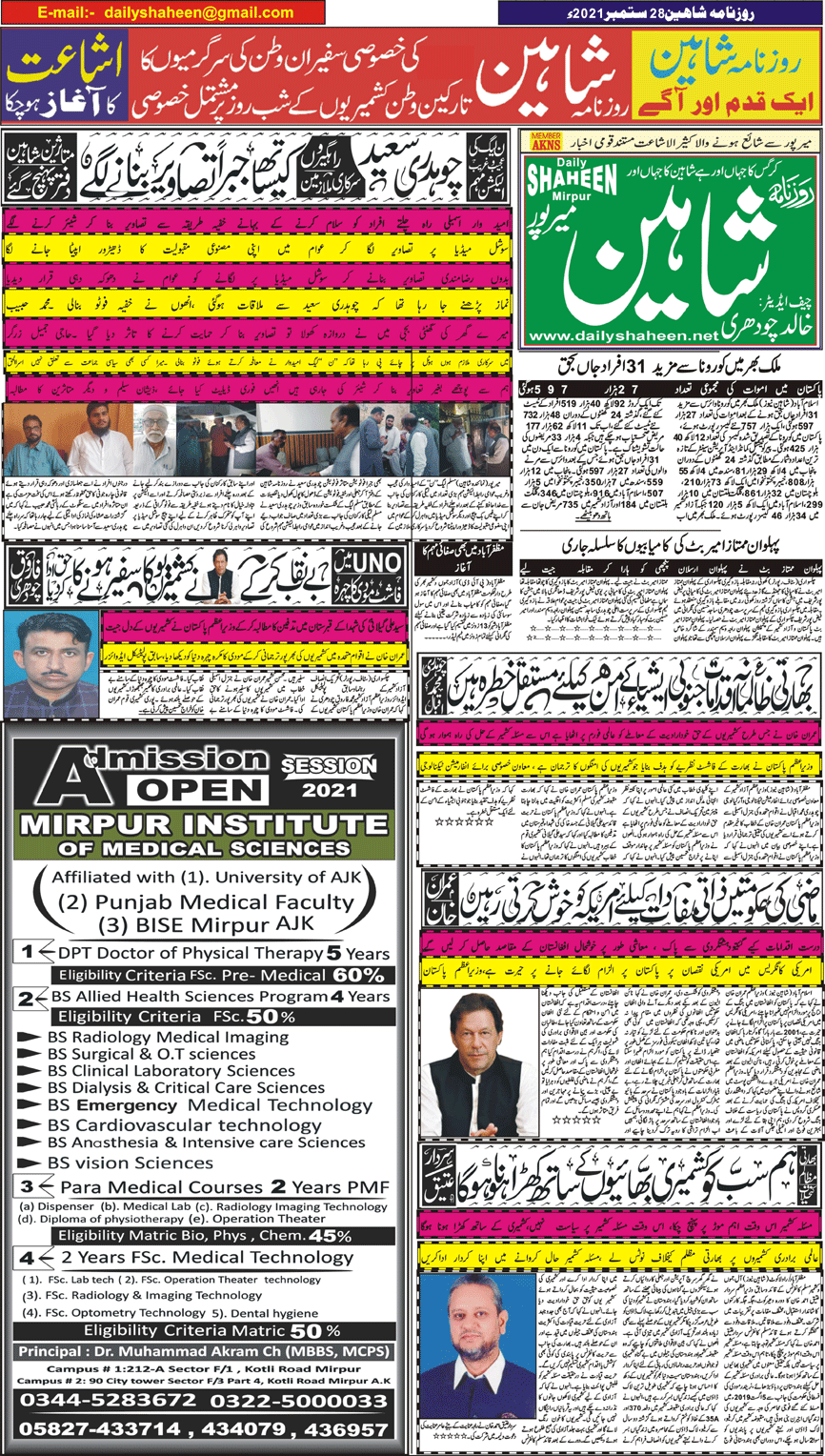Daily Shaheen Mirpur – Latest news from Mirpur & Azad Kashmir | Mirpur News, Mirpur Newspaper