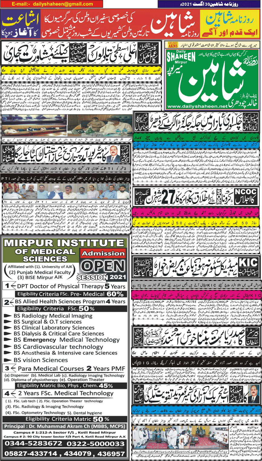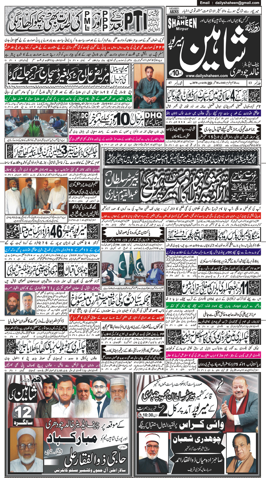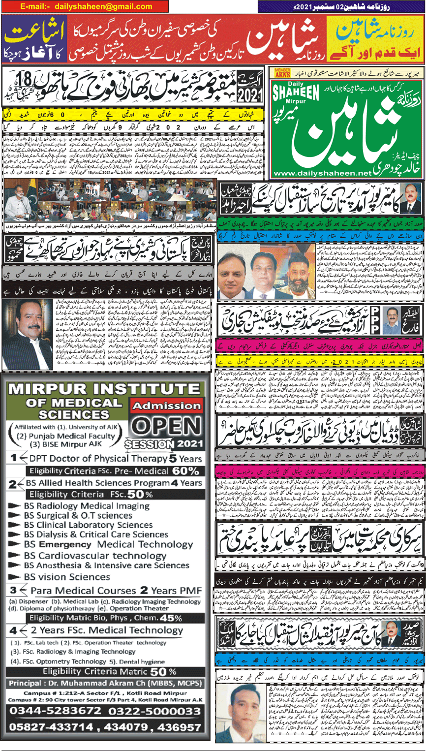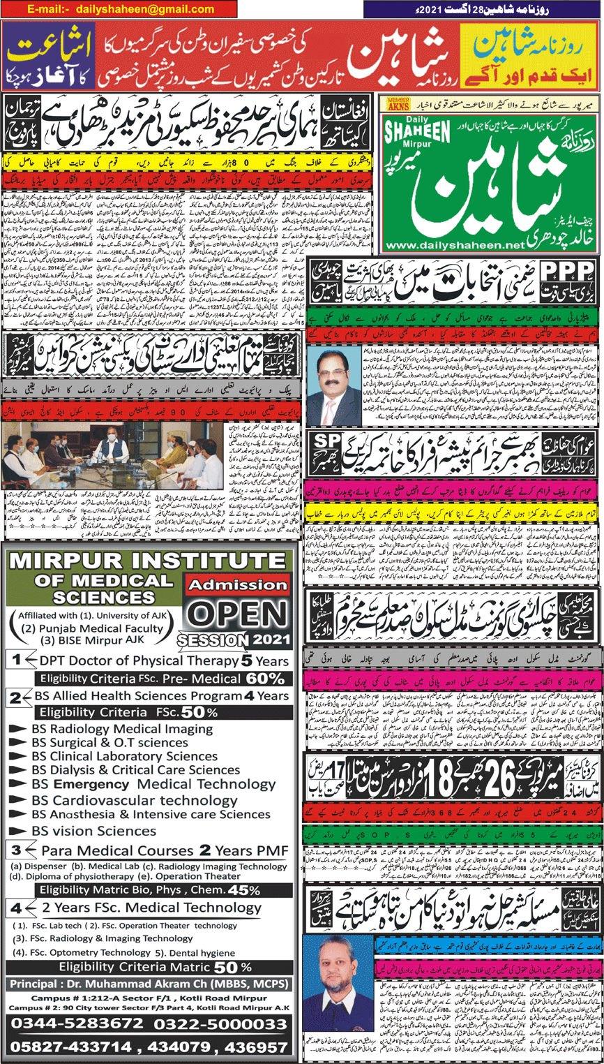 Daily Shaheen Mirpur – Latest news from Mirpur & Azad Kashmir | Mirpur News, Mirpur Newspaper