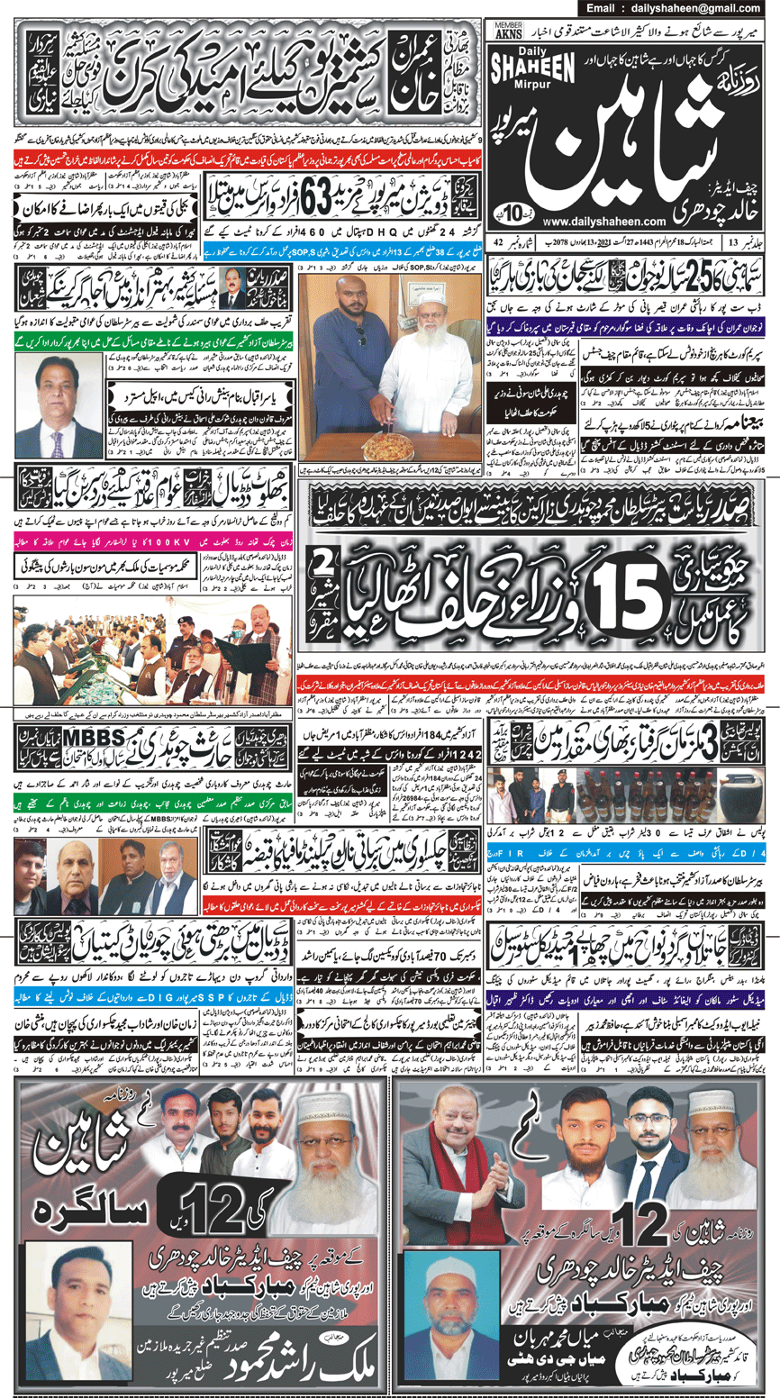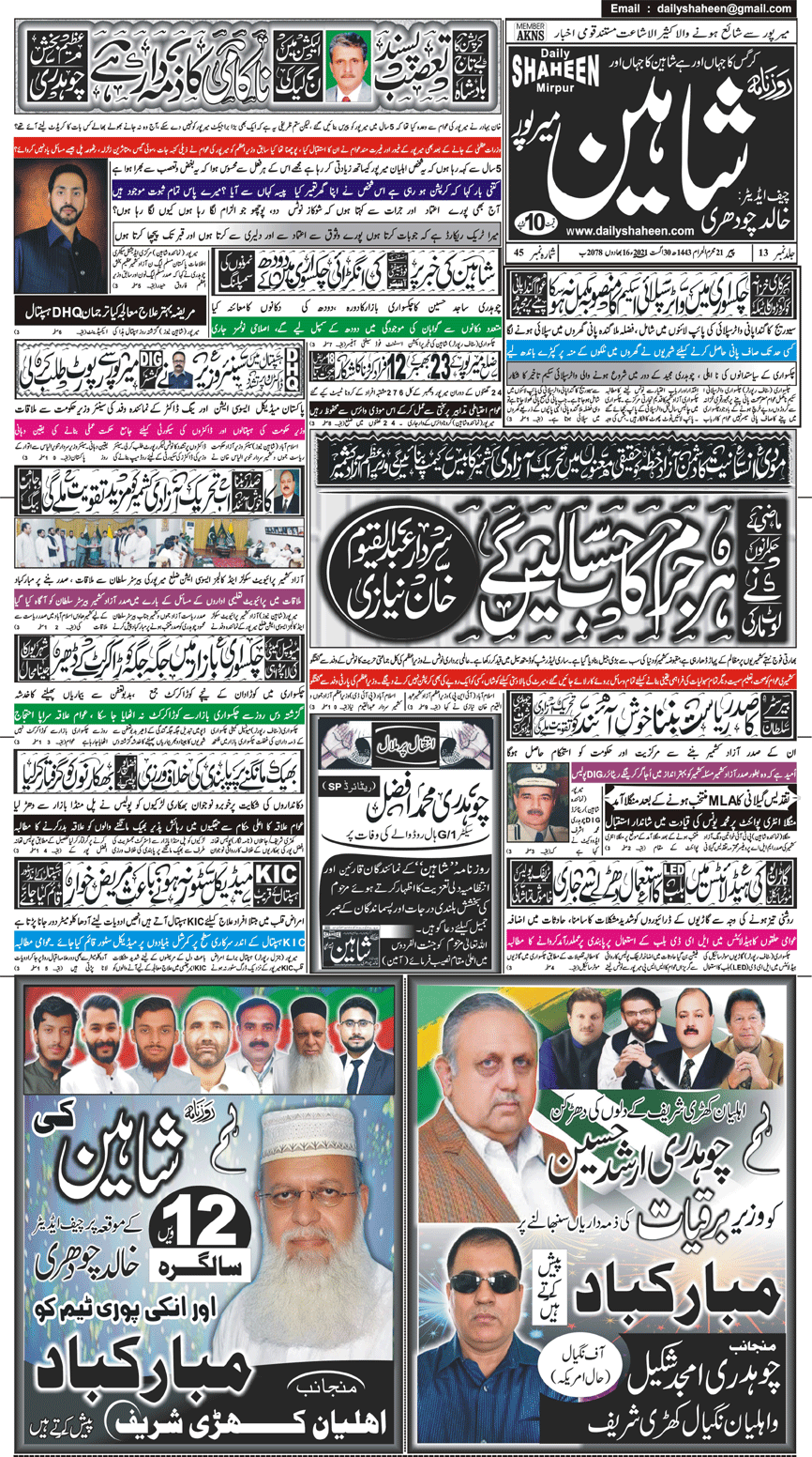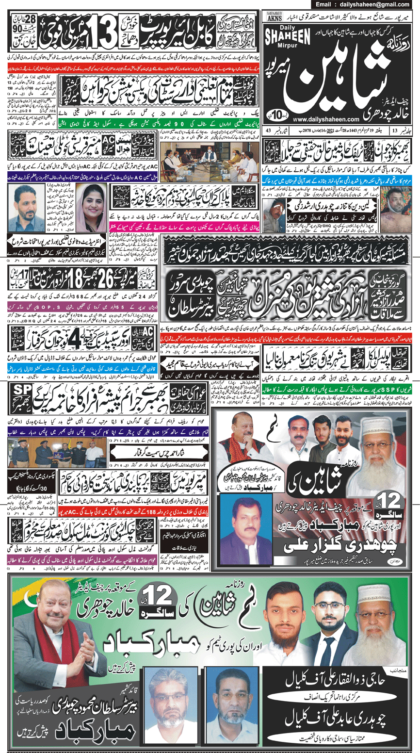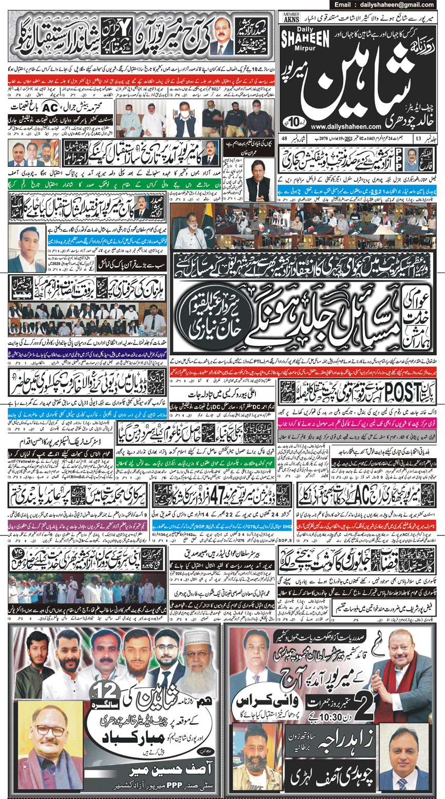 Daily Shaheen Mirpur – Latest news from Mirpur & Azad Kashmir | Mirpur News, Mirpur Newspaper