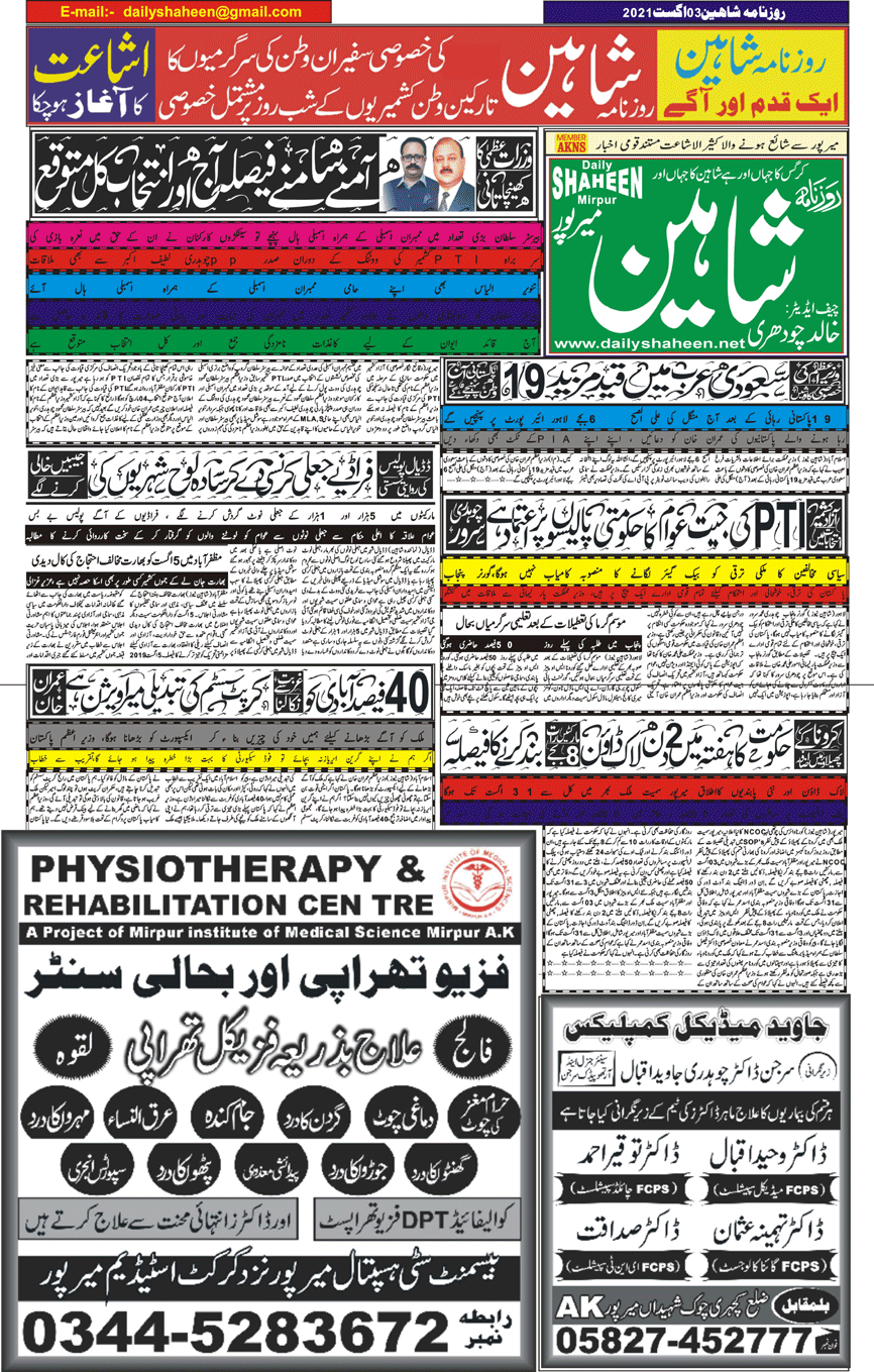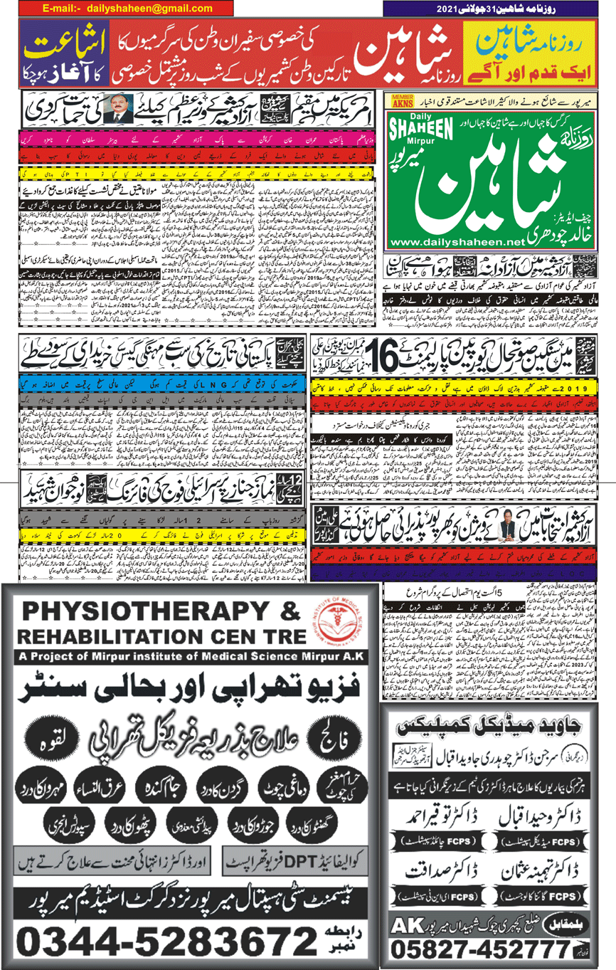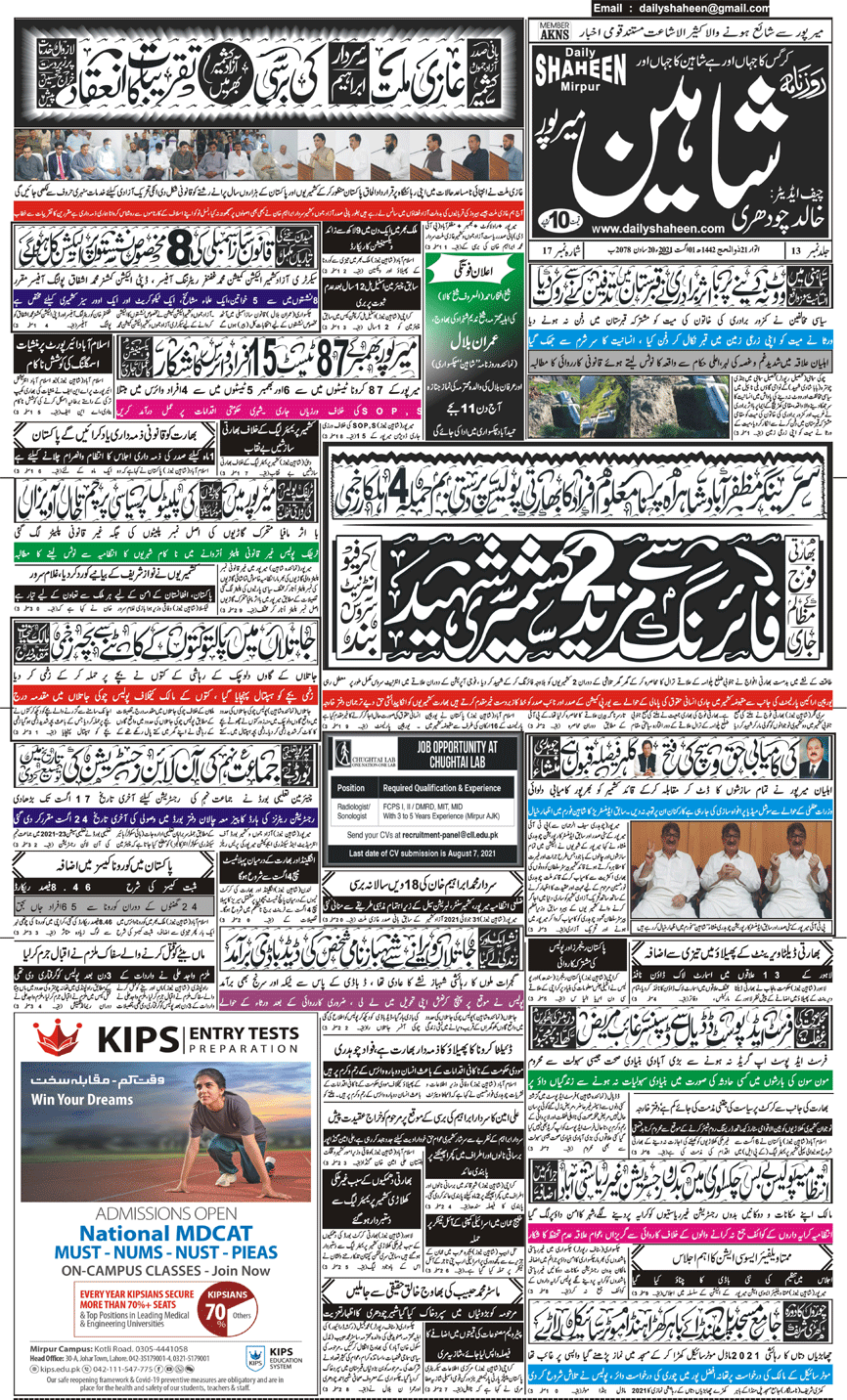 Daily Shaheen Mirpur – Latest news from Mirpur & Azad Kashmir | Mirpur News, Mirpur Newspaper