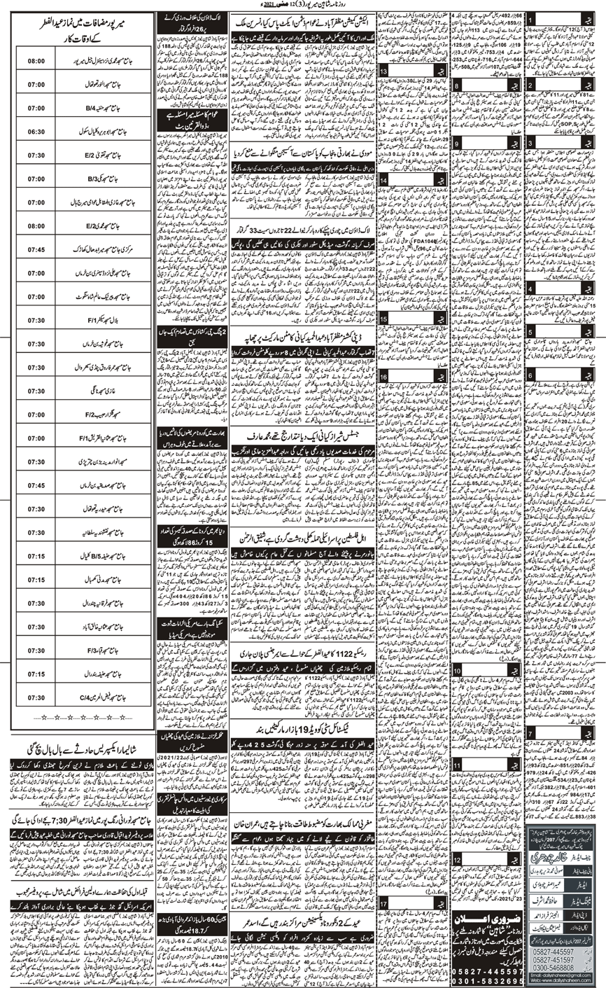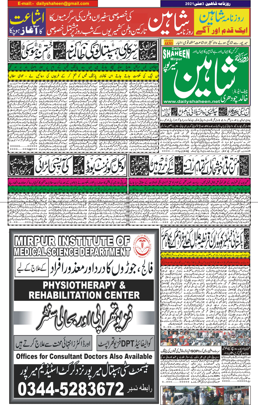 Daily Shaheen Mirpur – Latest news from Mirpur & Azad Kashmir | Mirpur News, Mirpur Newspaper