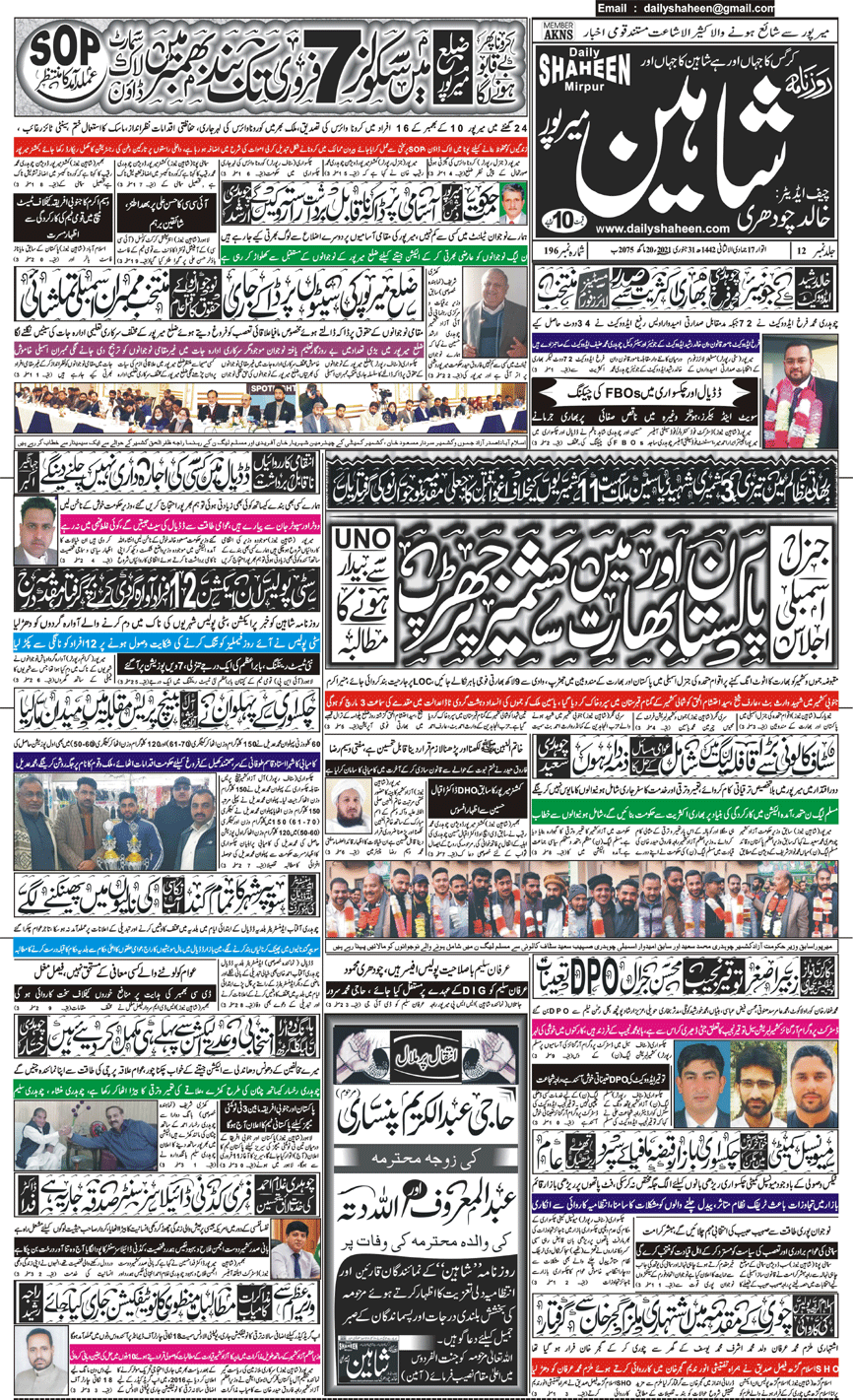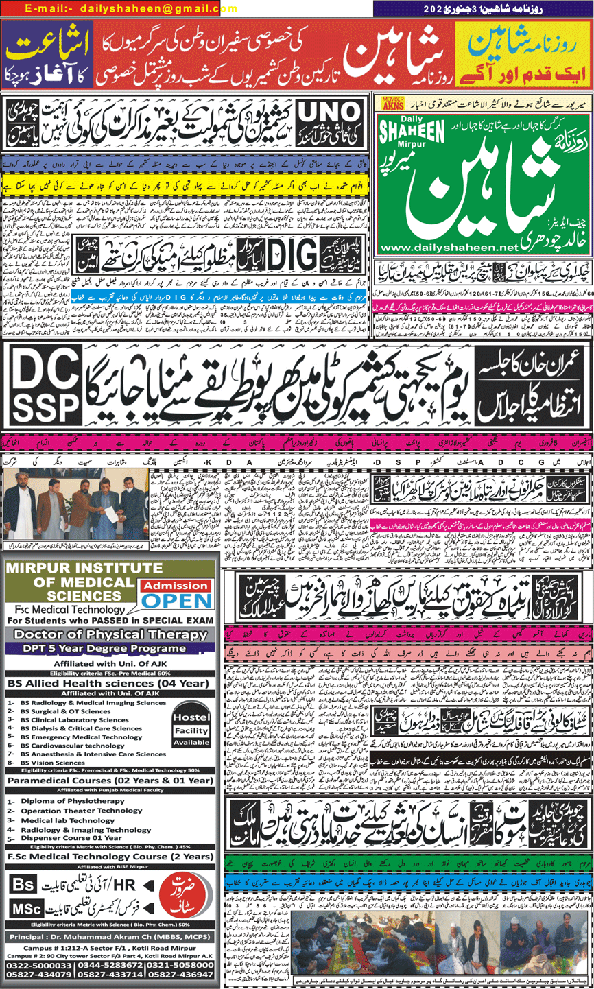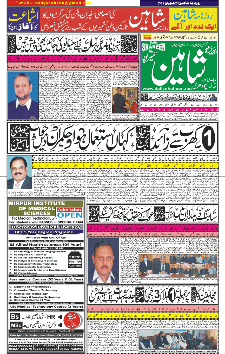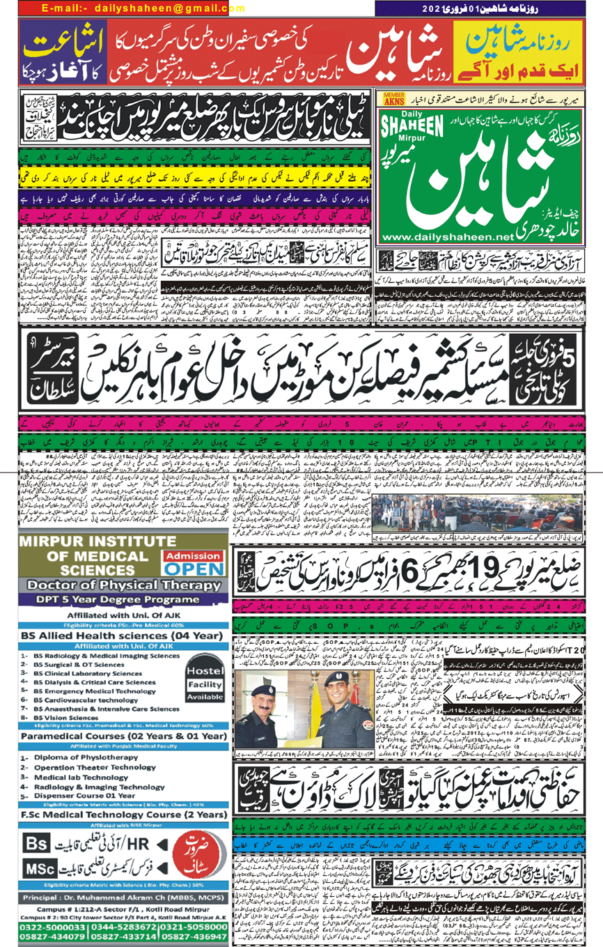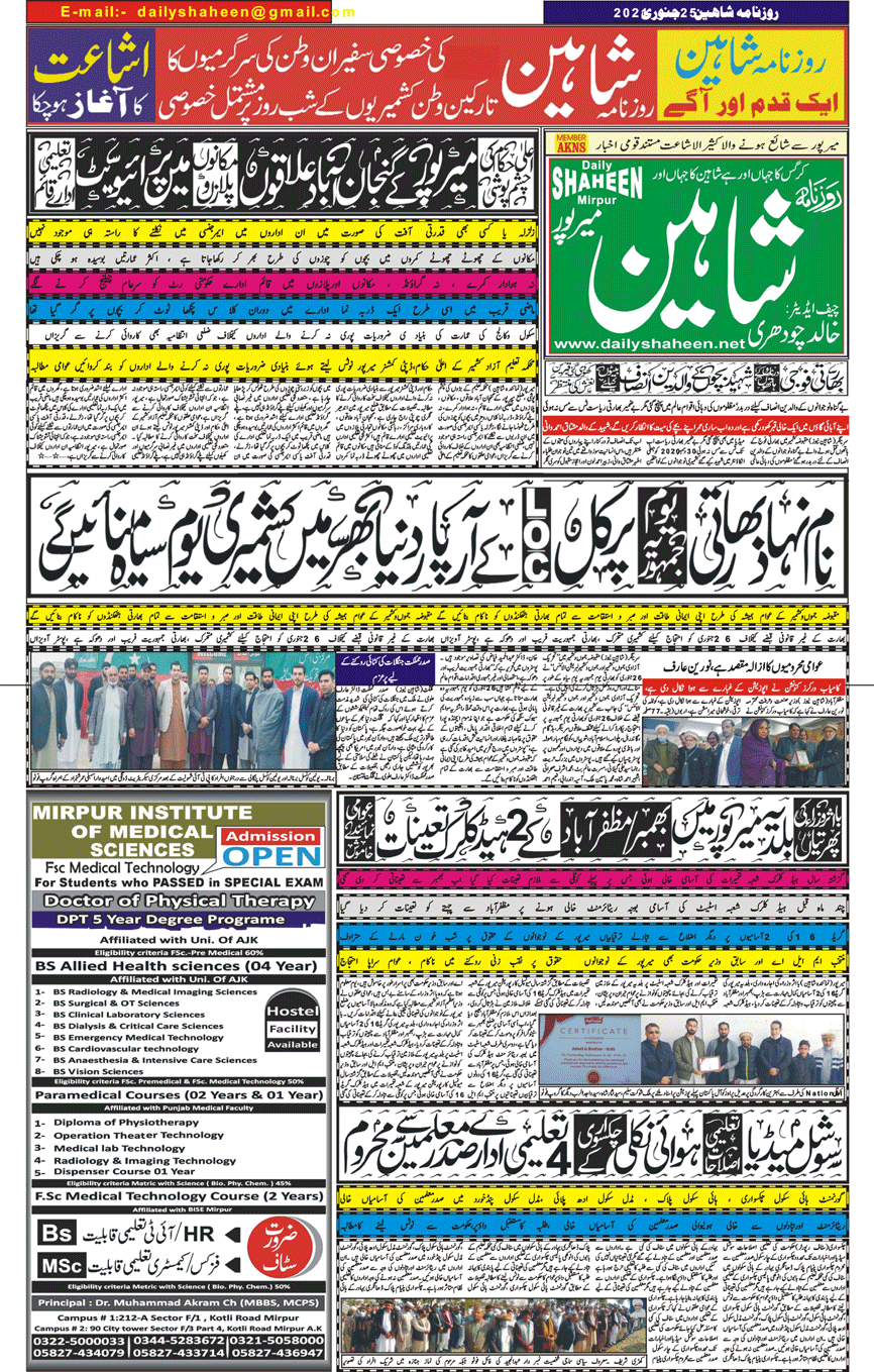 Daily Shaheen Mirpur – Latest news from Mirpur & Azad Kashmir | Mirpur News, Mirpur Newspaper