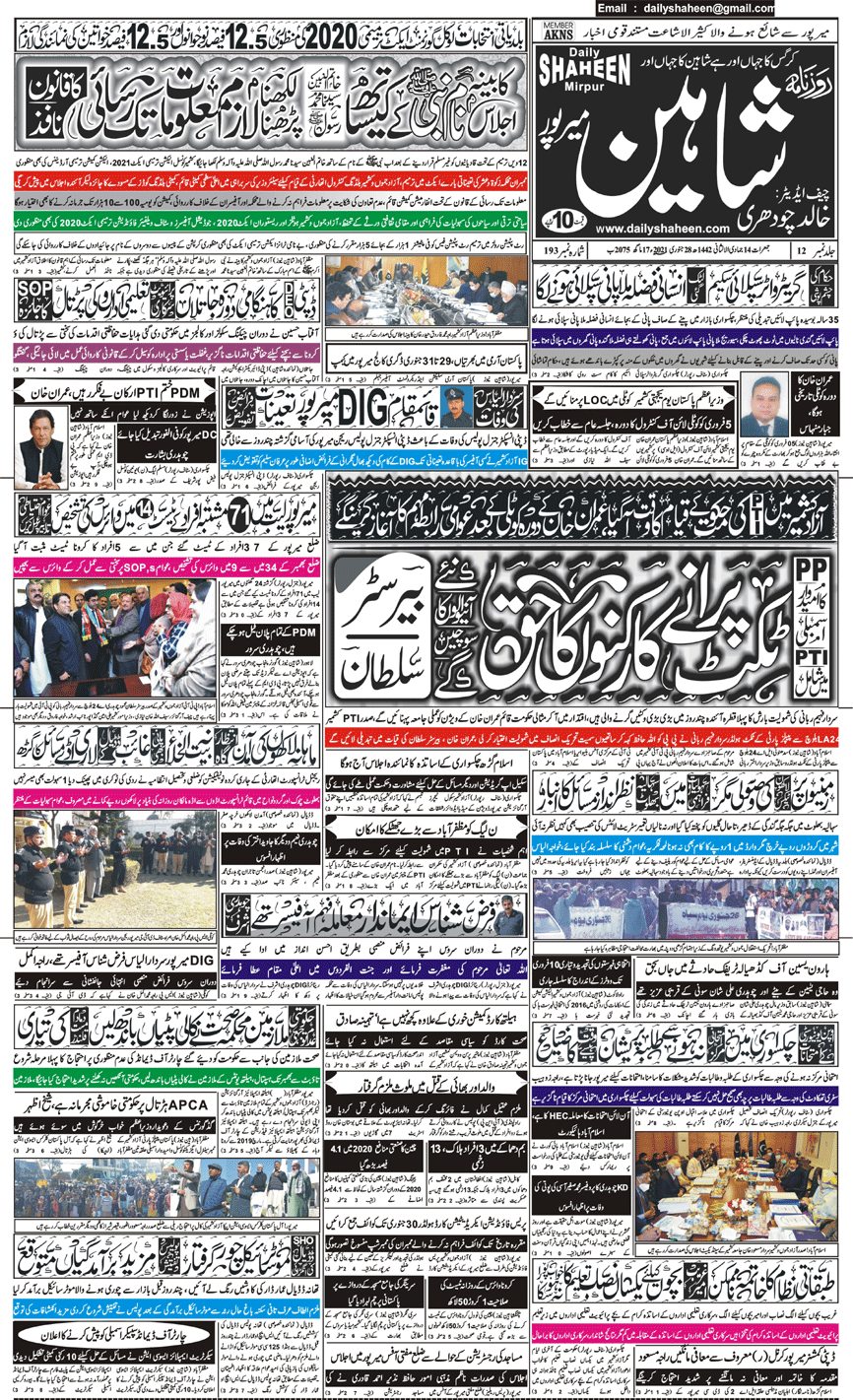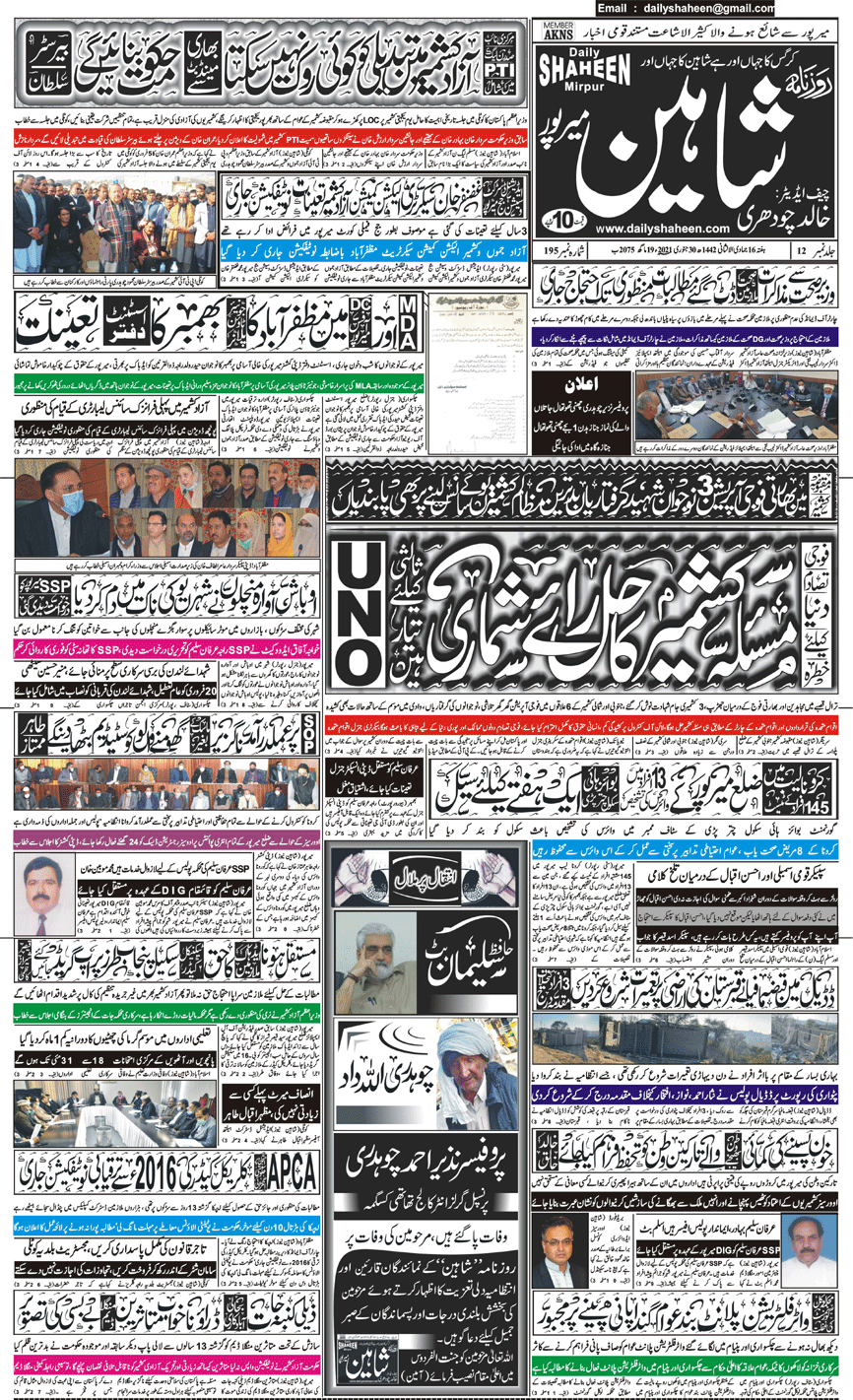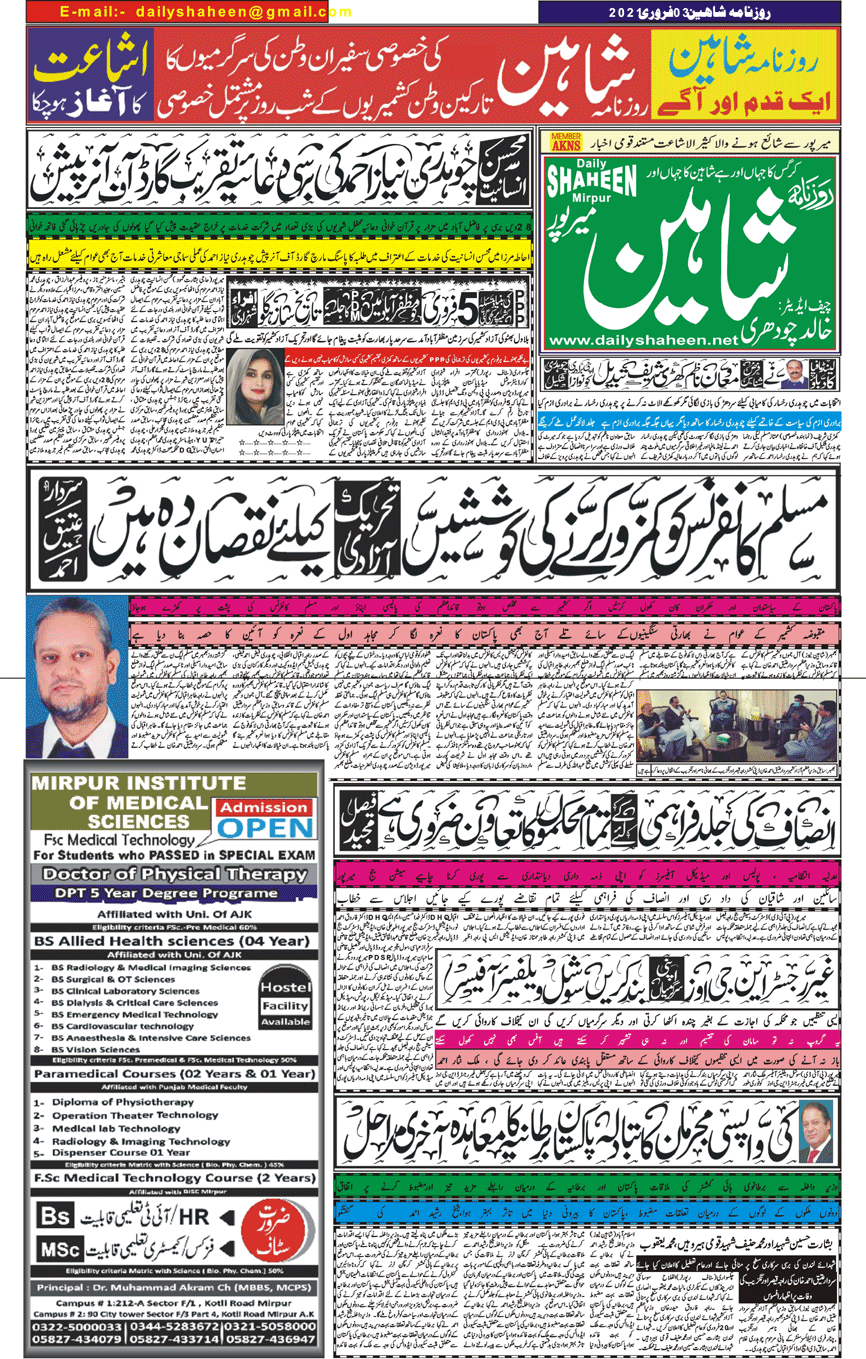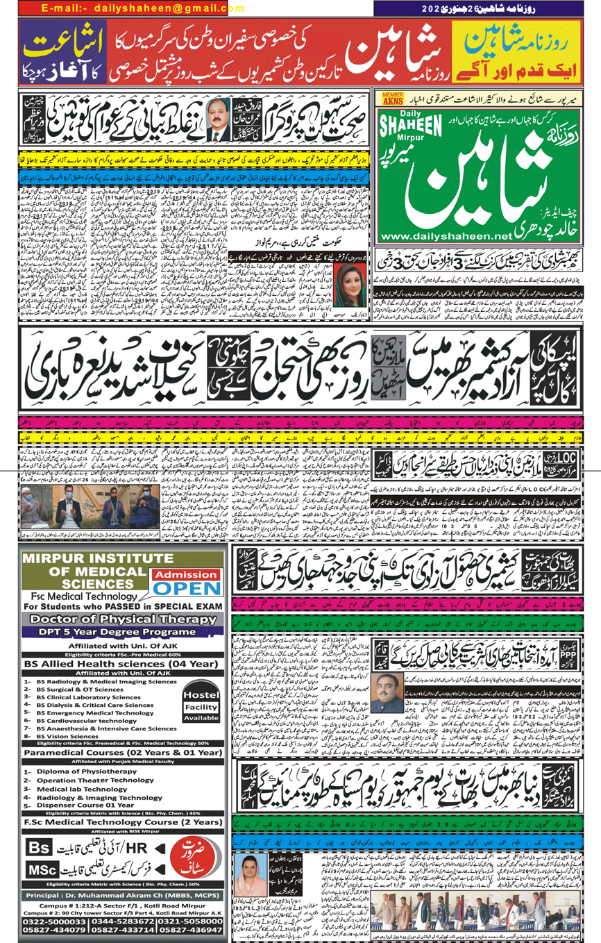 Daily Shaheen Mirpur – Latest news from Mirpur & Azad Kashmir | Mirpur News, Mirpur Newspaper