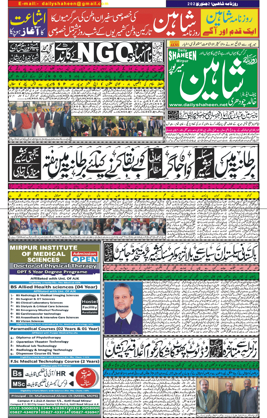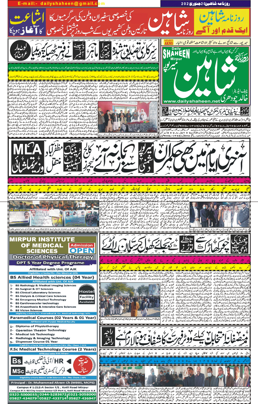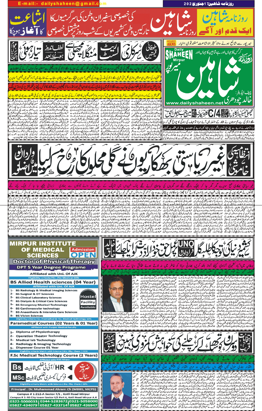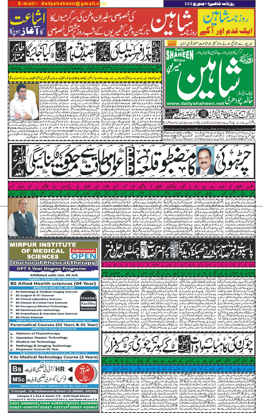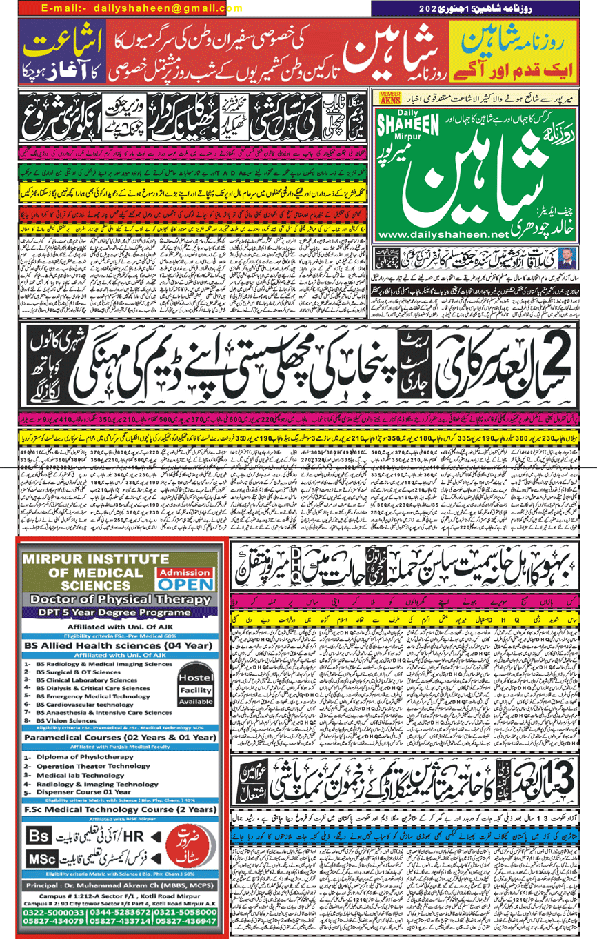 Daily Shaheen Mirpur – Latest news from Mirpur & Azad Kashmir | Mirpur News, Mirpur Newspaper