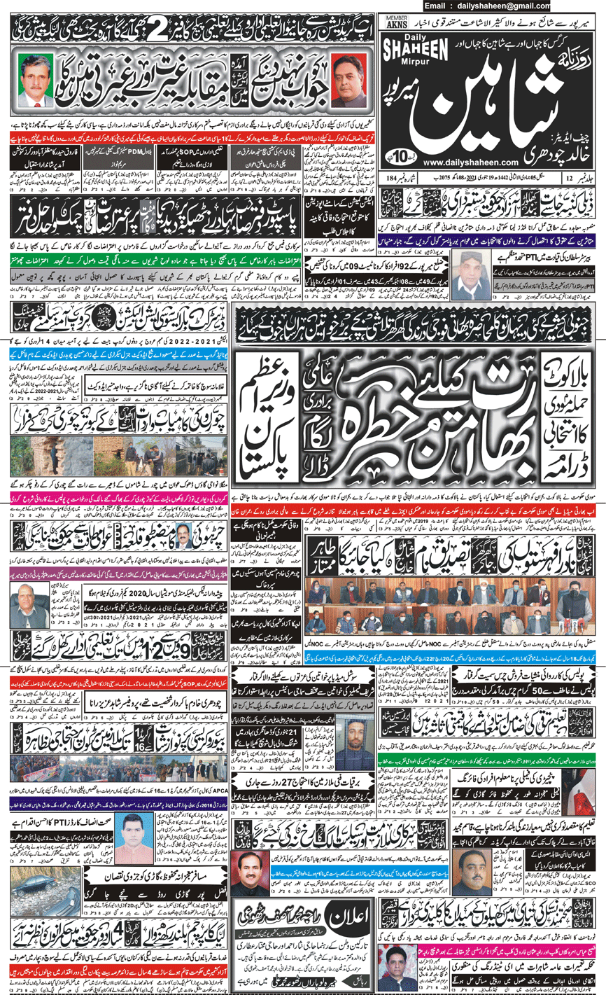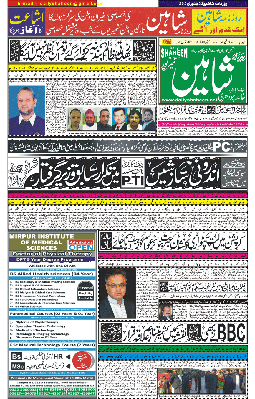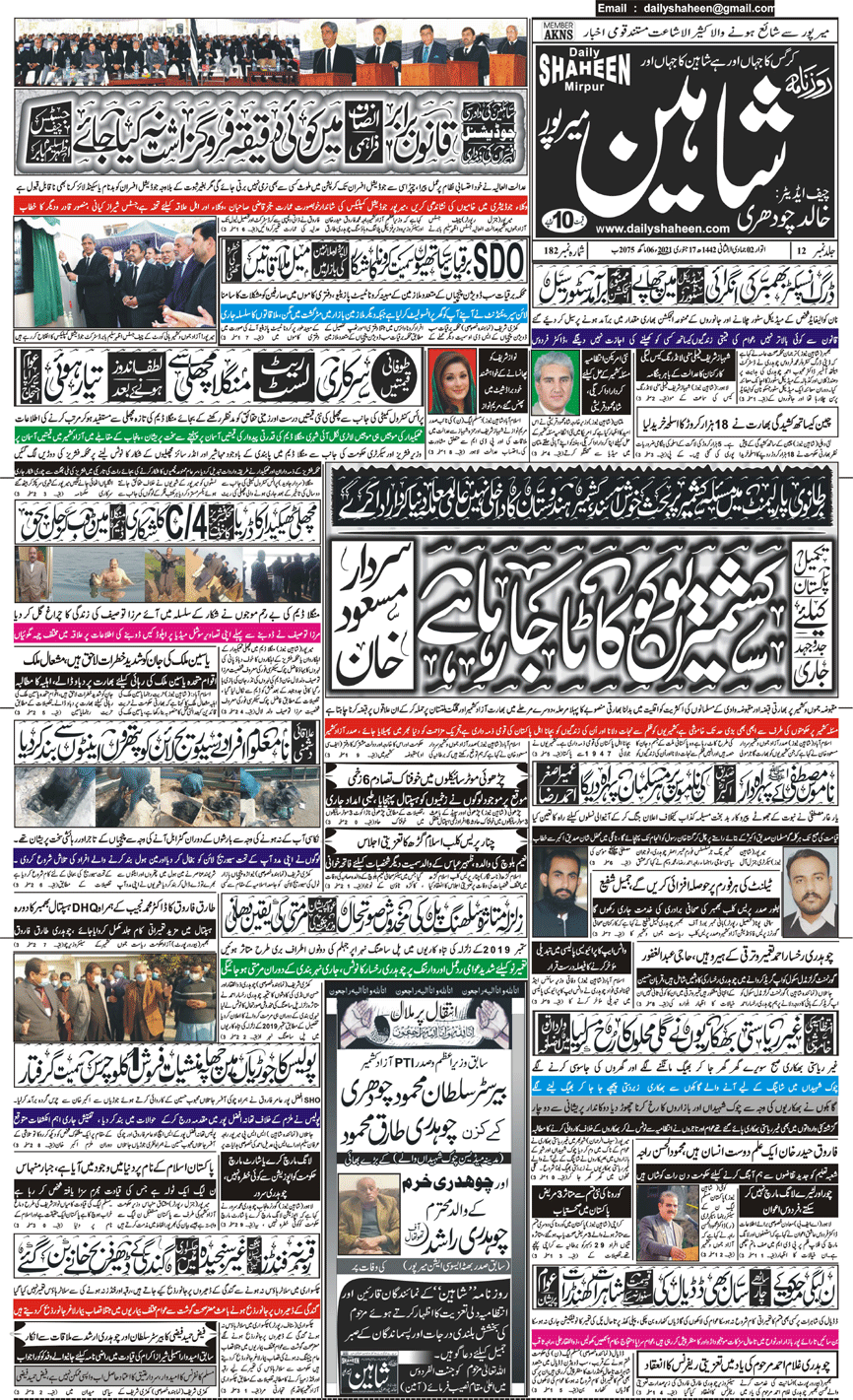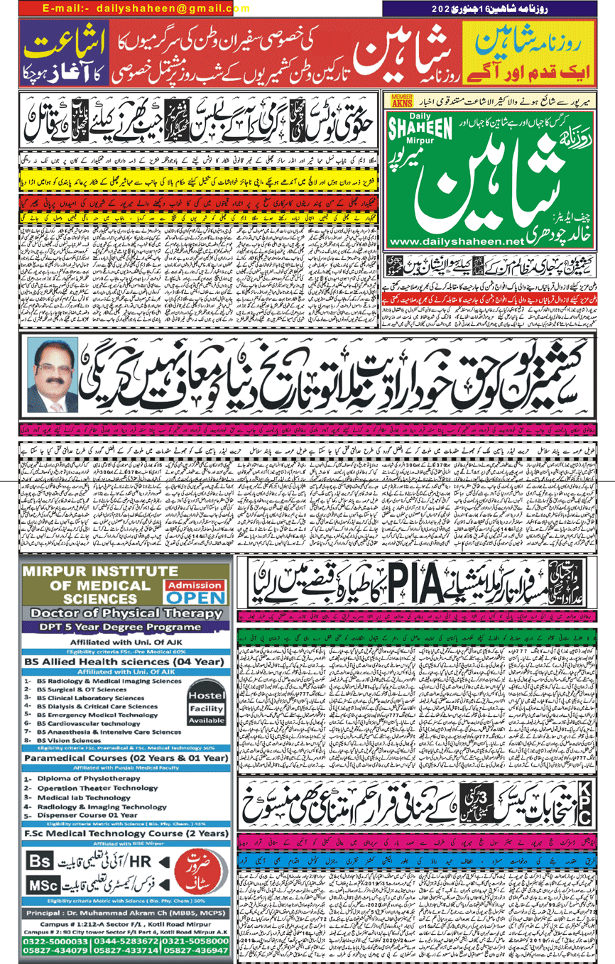 Daily Shaheen Mirpur – Latest news from Mirpur & Azad Kashmir | Mirpur News, Mirpur Newspaper