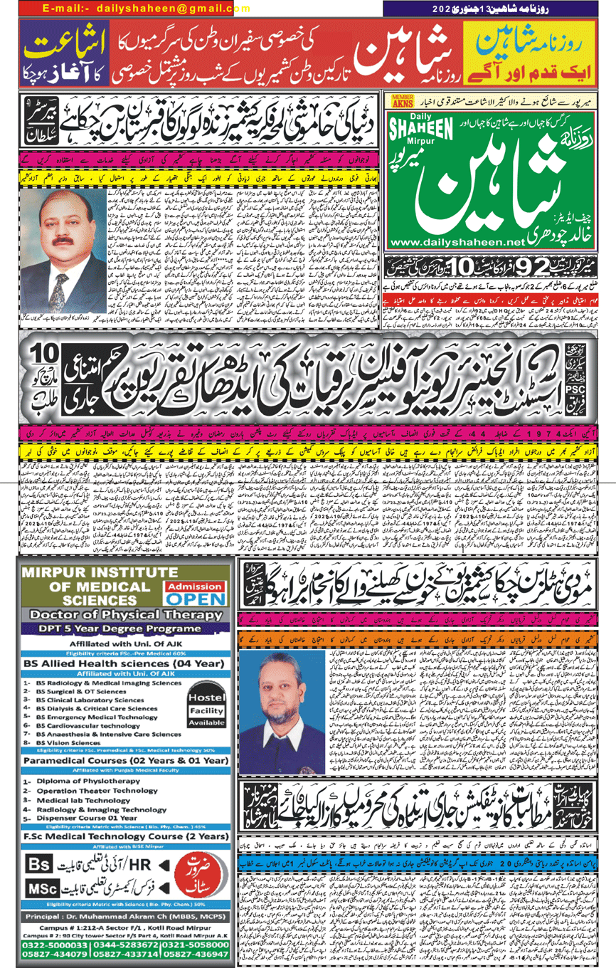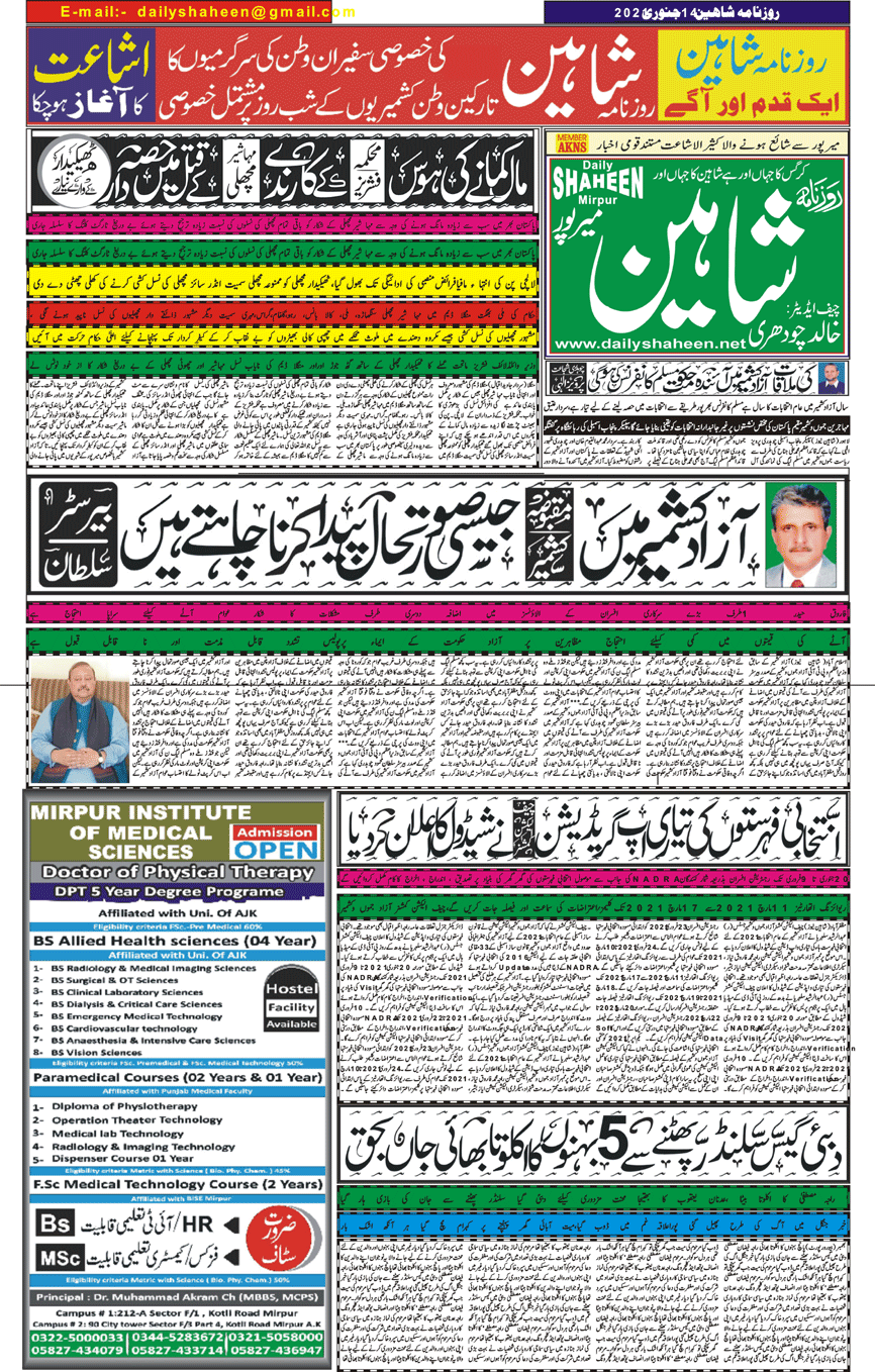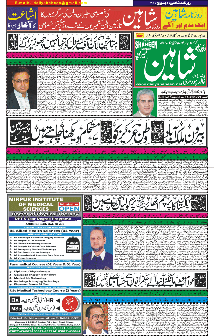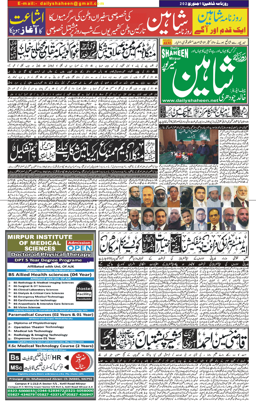 Daily Shaheen Mirpur – Latest news from Mirpur & Azad Kashmir | Mirpur News, Mirpur Newspaper