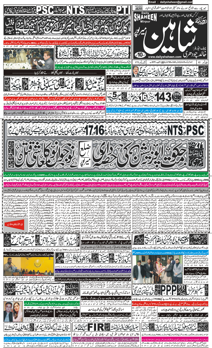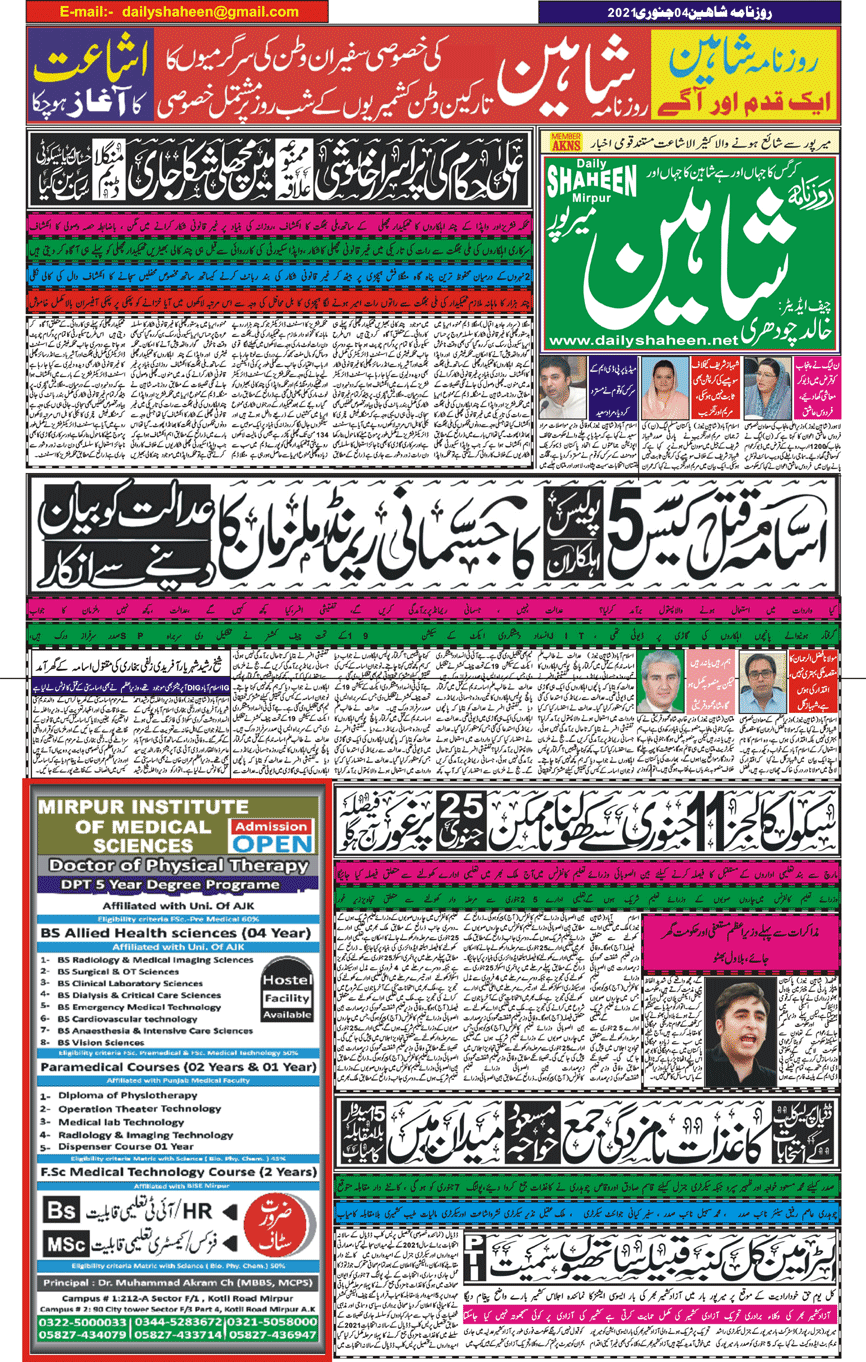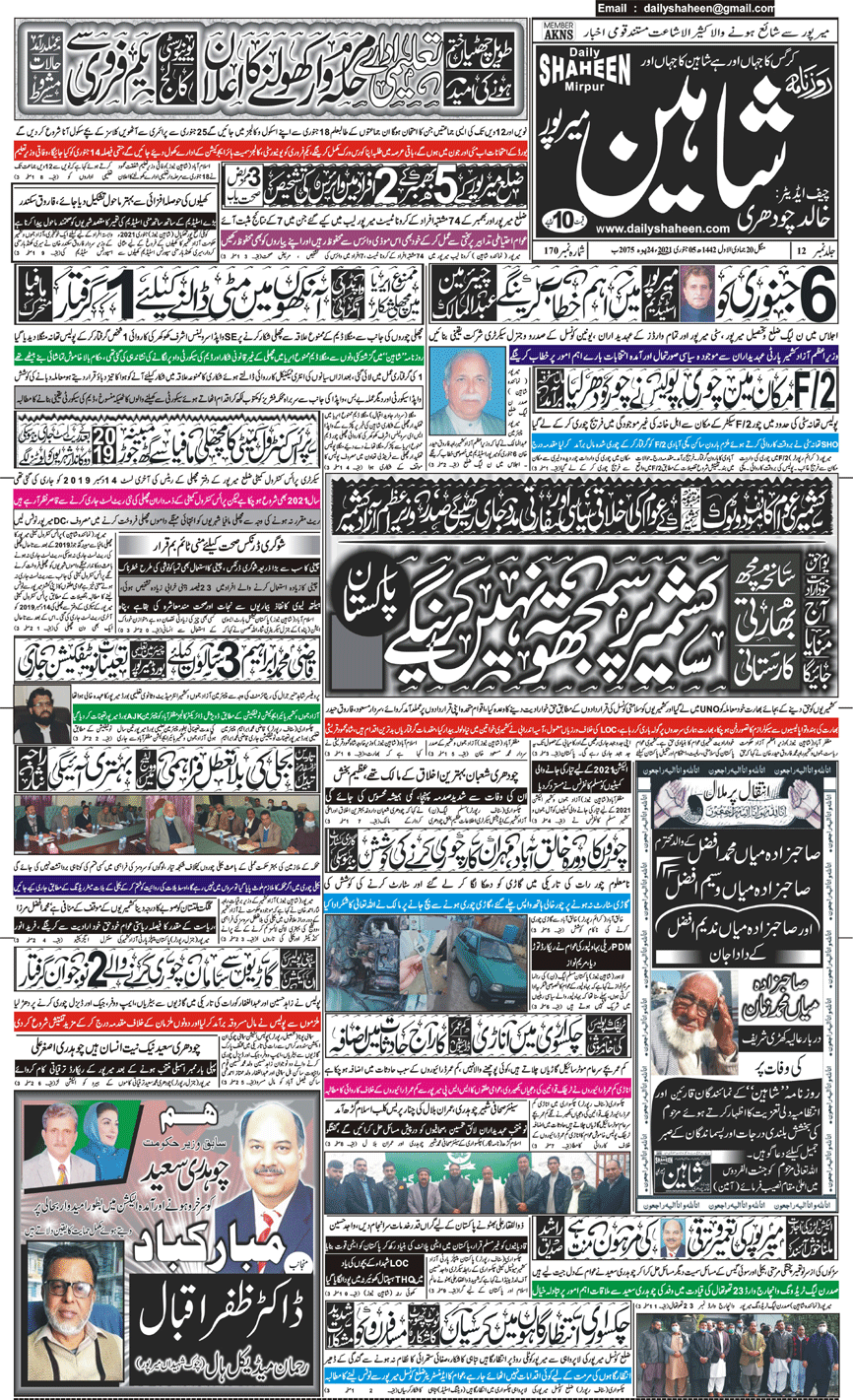 Daily Shaheen Mirpur – Latest news from Mirpur & Azad Kashmir | Mirpur News, Mirpur Newspaper