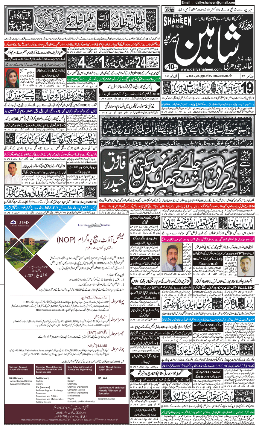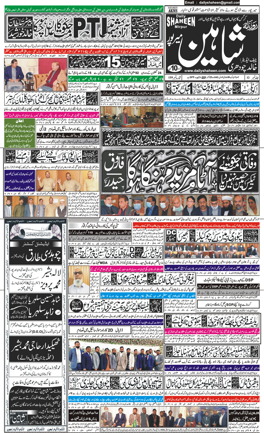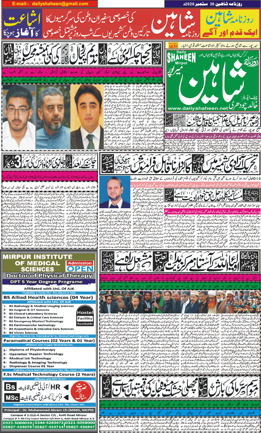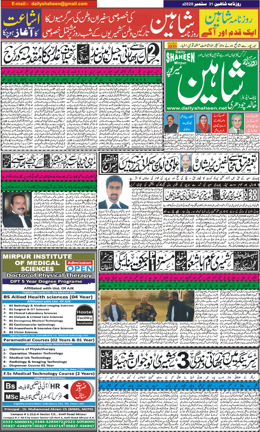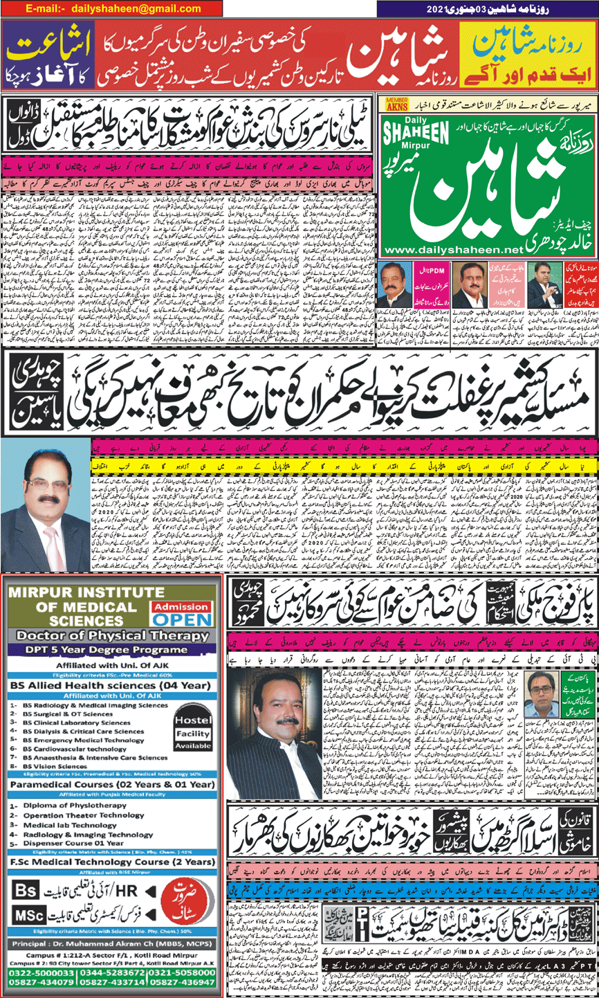 Daily Shaheen Mirpur – Latest news from Mirpur & Azad Kashmir | Mirpur News, Mirpur Newspaper