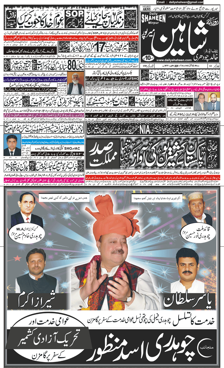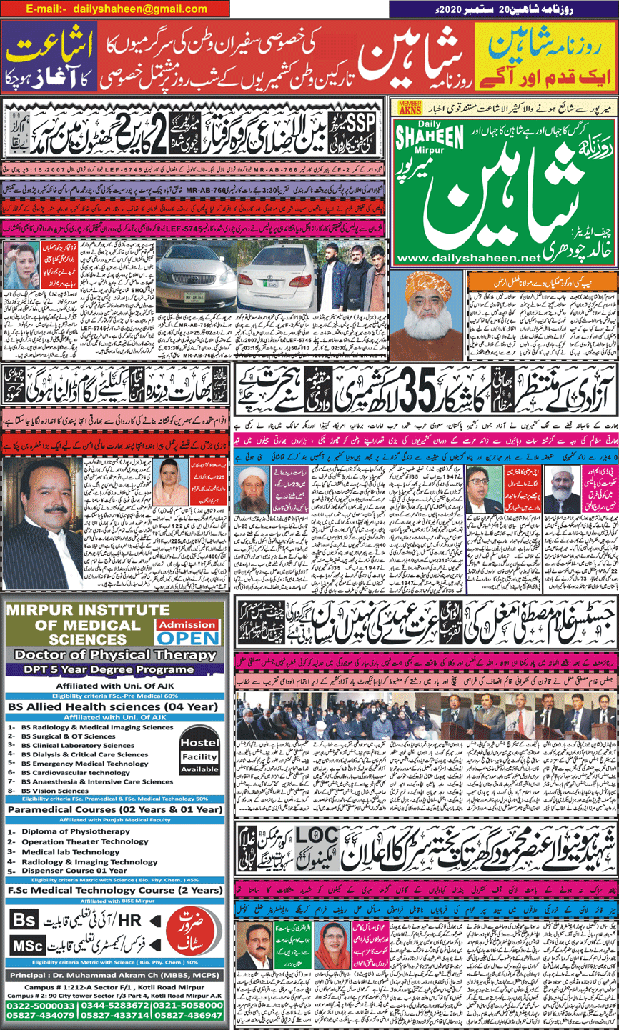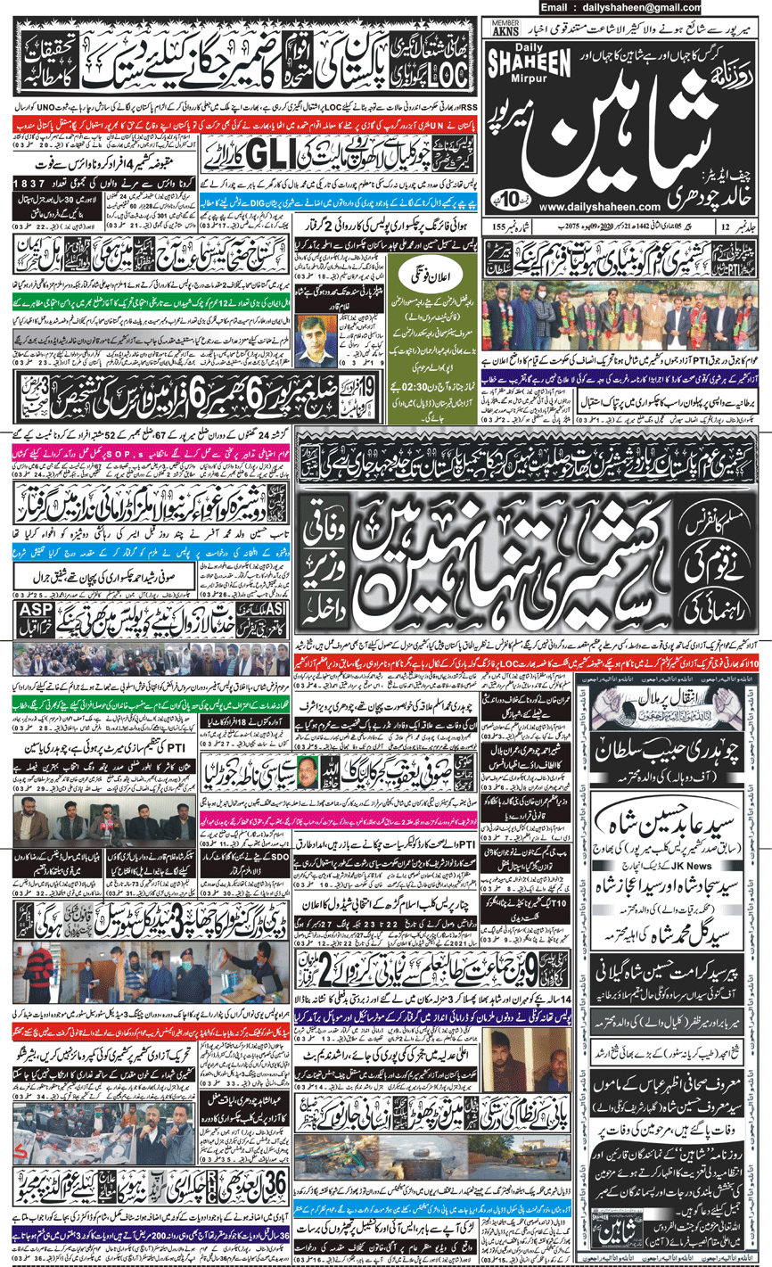 Daily Shaheen Mirpur – Latest news from Mirpur & Azad Kashmir | Mirpur News, Mirpur Newspaper
