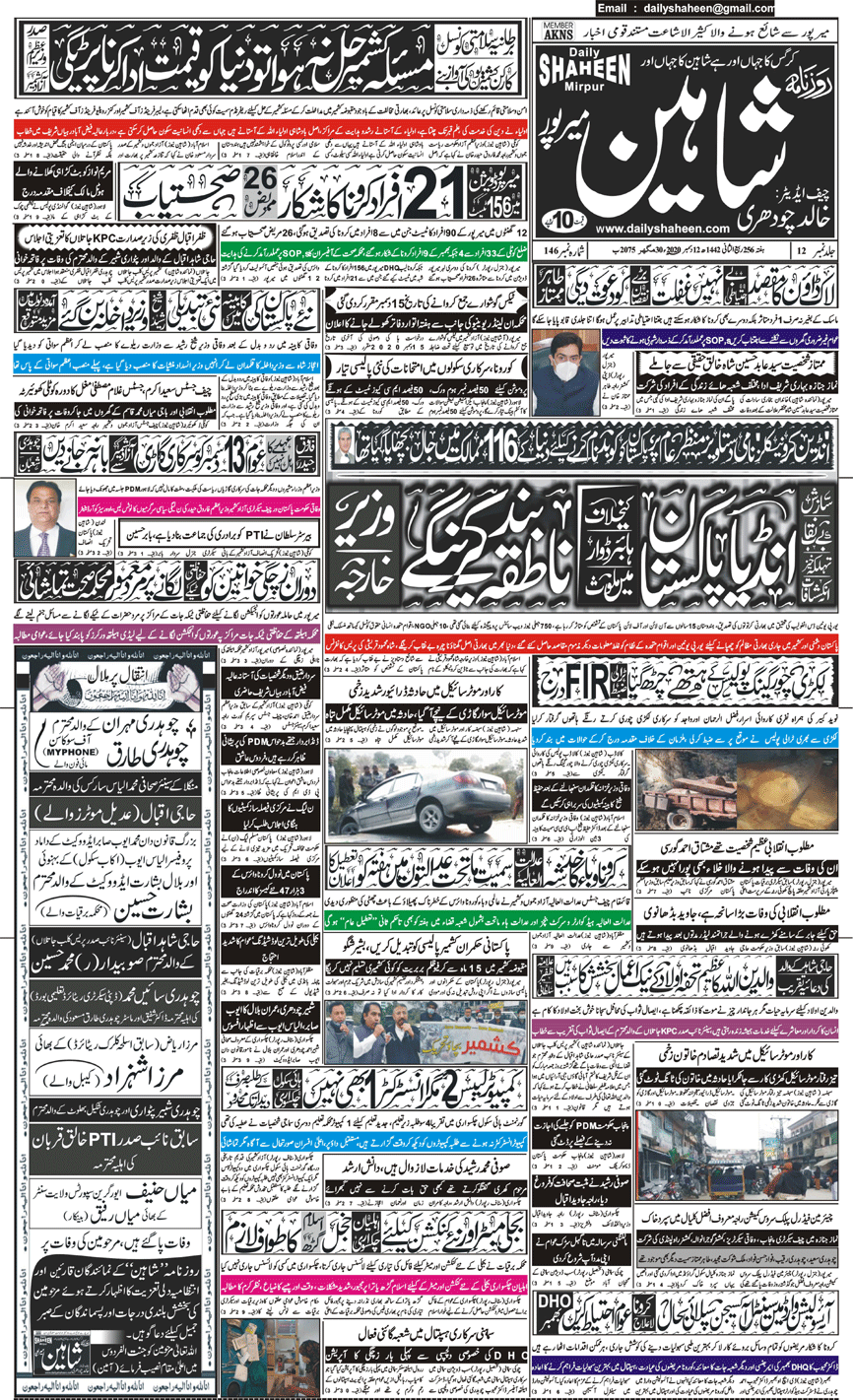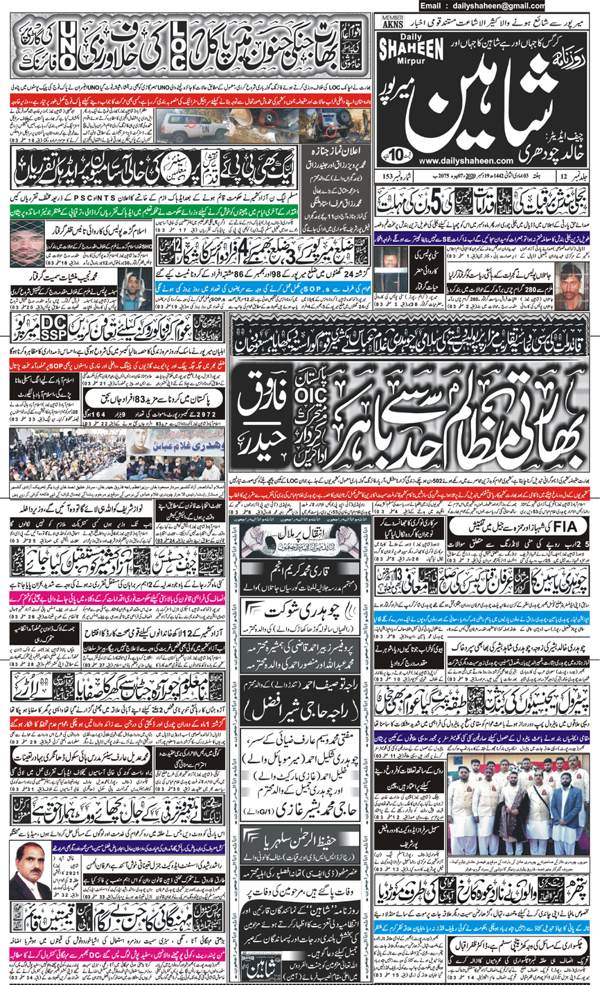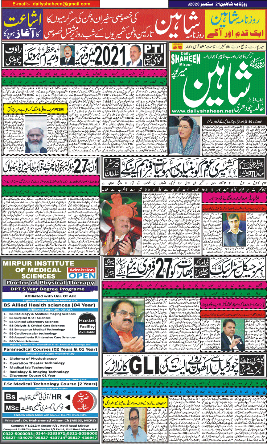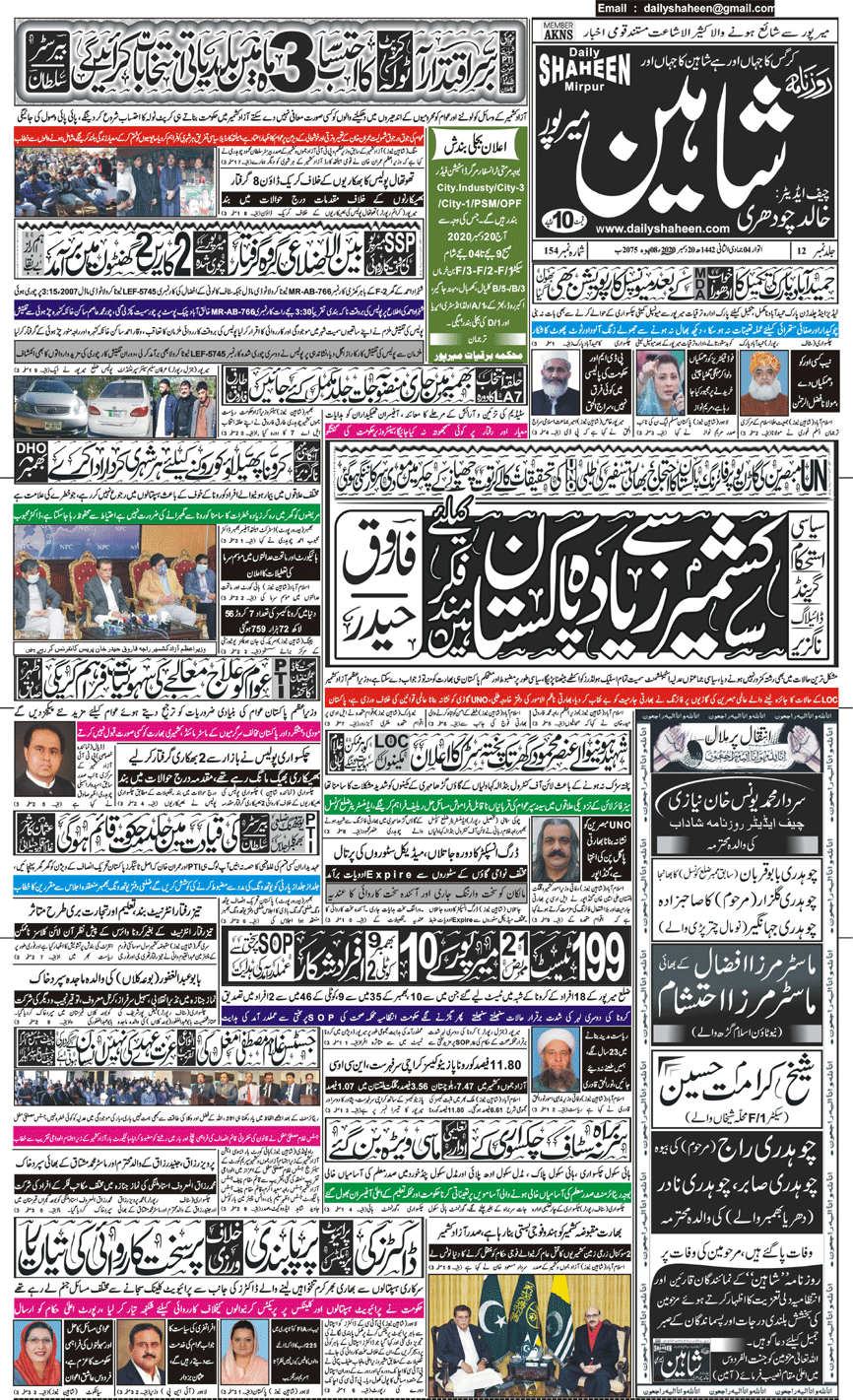 Daily Shaheen Mirpur – Latest news from Mirpur & Azad Kashmir | Mirpur News, Mirpur Newspaper