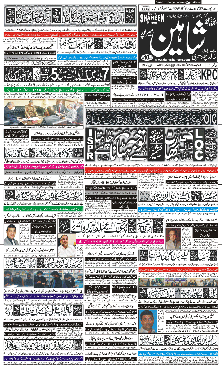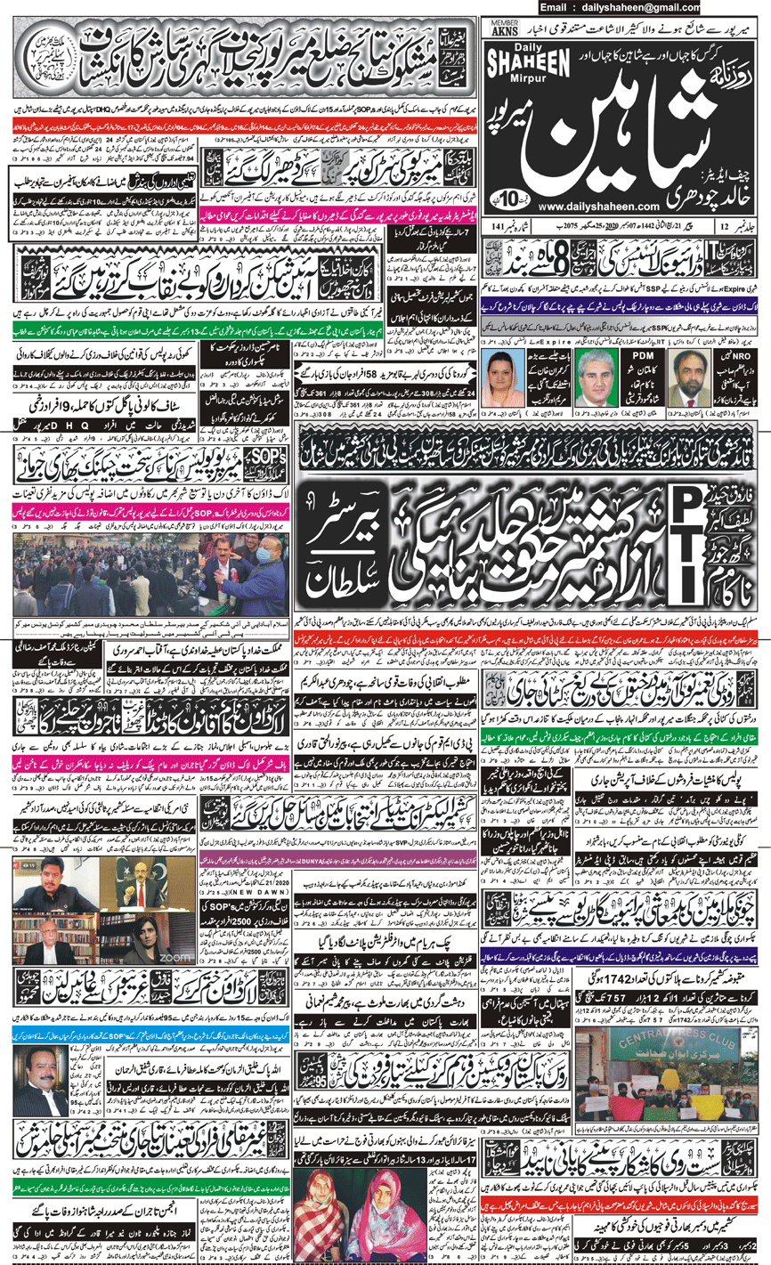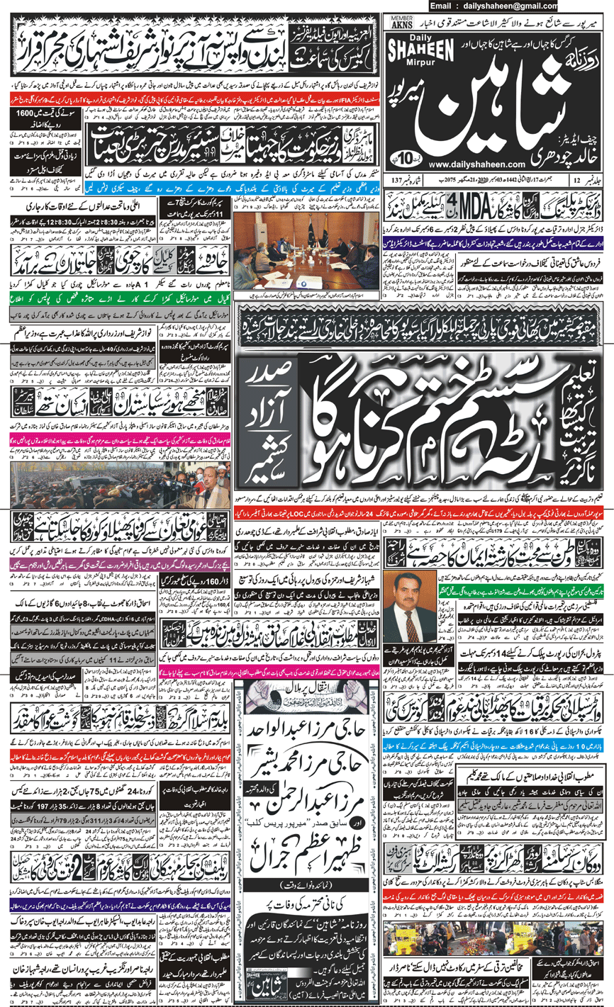 Daily Shaheen Mirpur – Latest news from Mirpur & Azad Kashmir | Mirpur News, Mirpur Newspaper