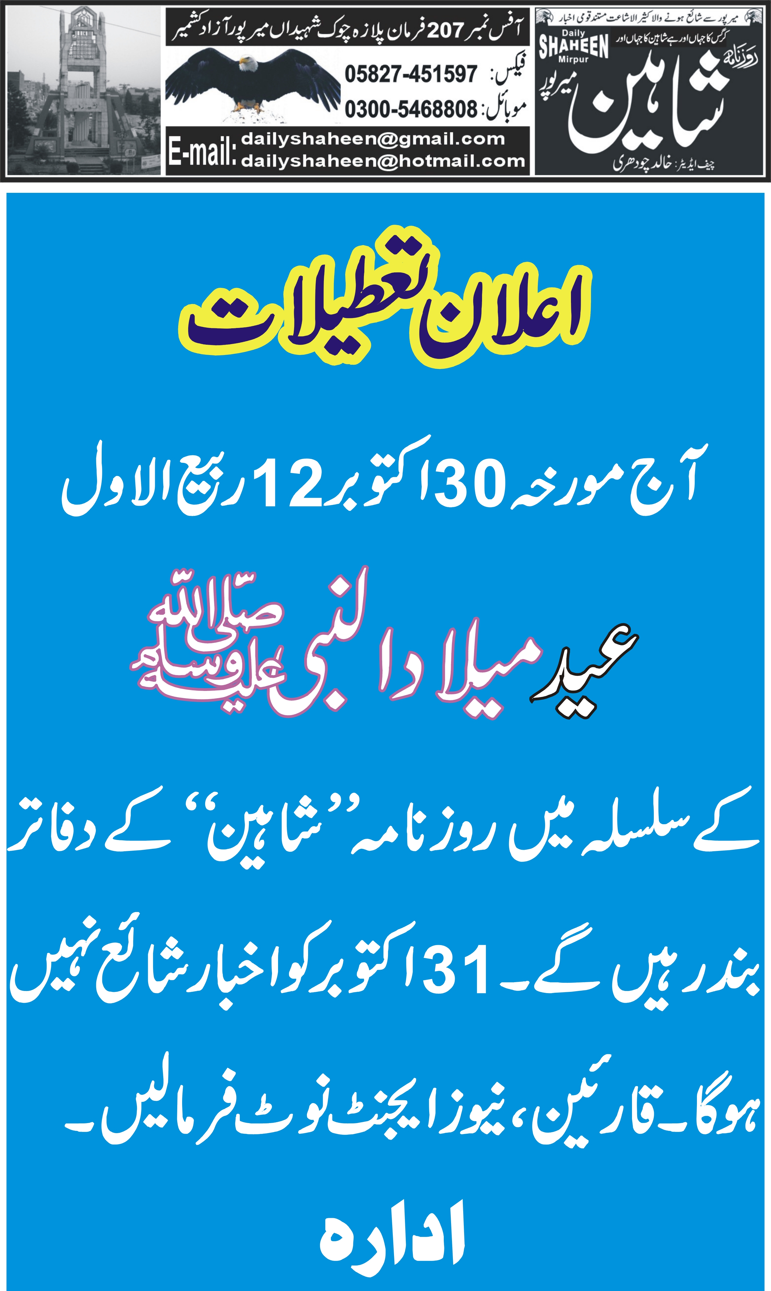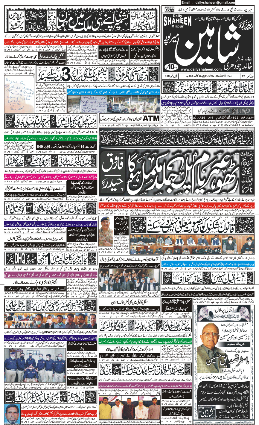Daily Shaheen Mirpur – Latest news from Mirpur & Azad Kashmir | Mirpur News, Mirpur Newspaper