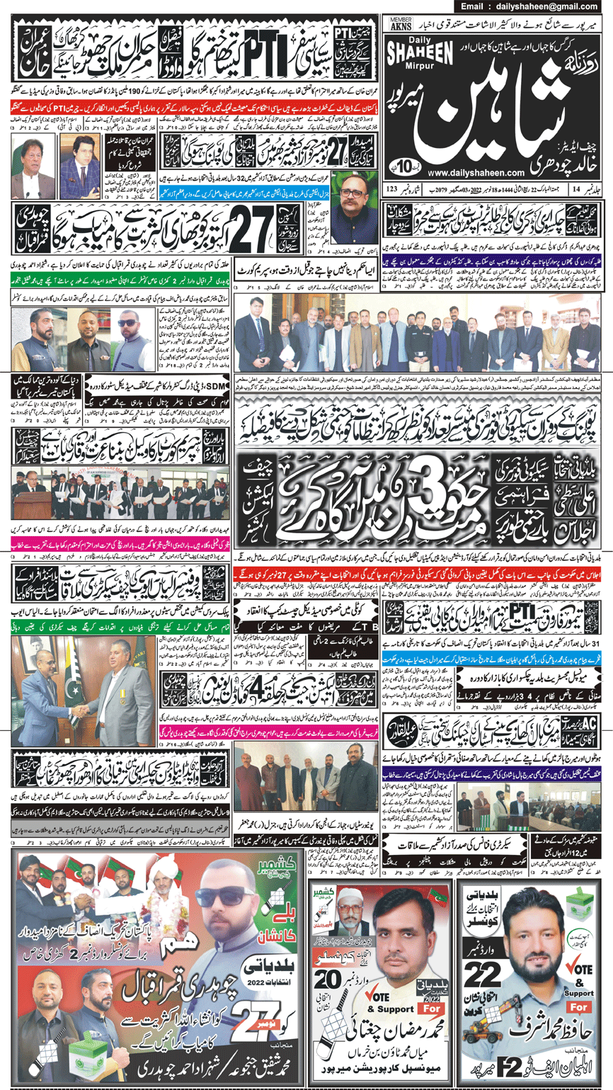 Daily Shaheen Mirpur – Latest news from Mirpur & Azad Kashmir | Mirpur News, Mirpur Newspaper