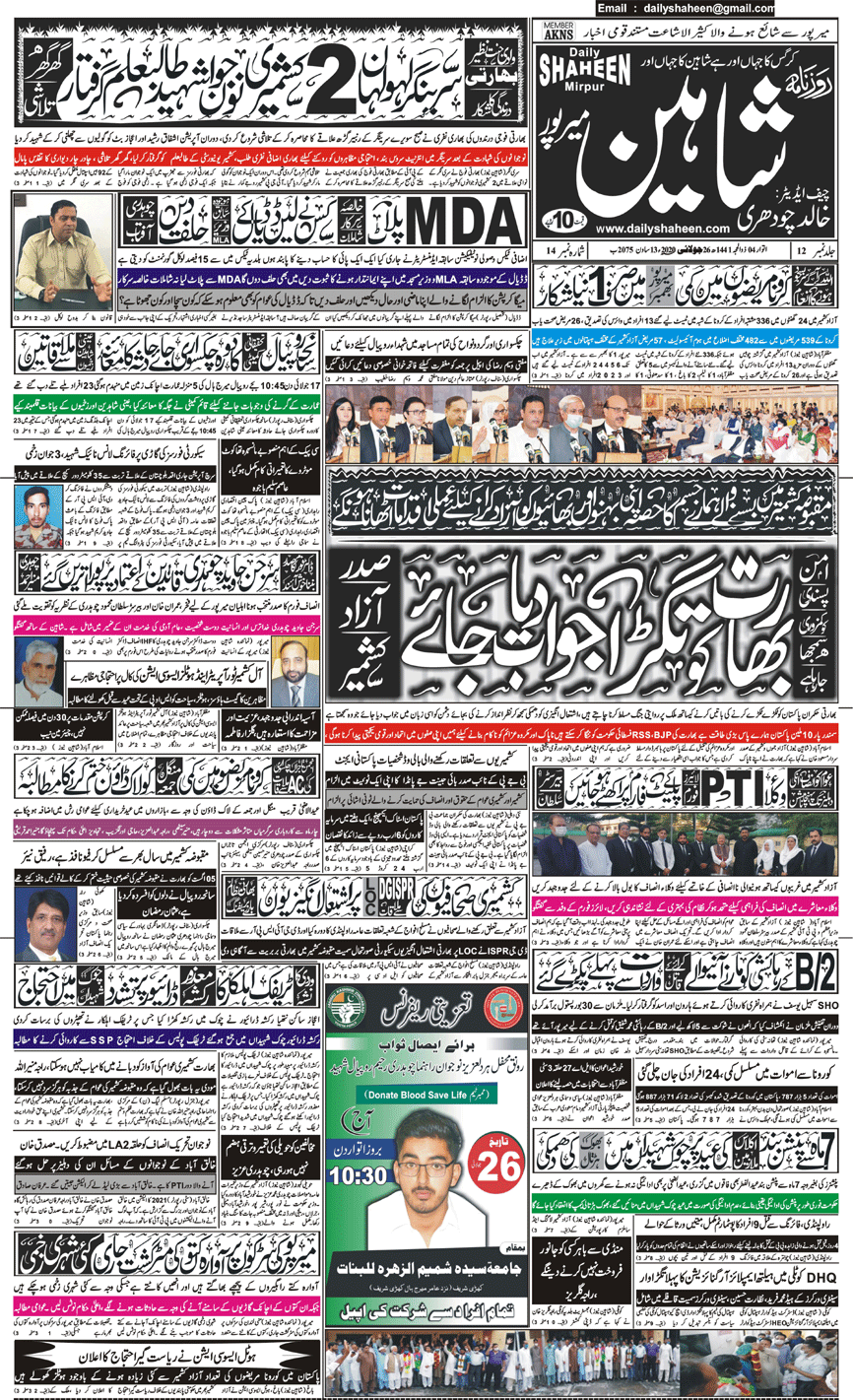 Daily Shaheen Mirpur – Latest news from Mirpur & Azad Kashmir | Mirpur News, Mirpur Newspaper
