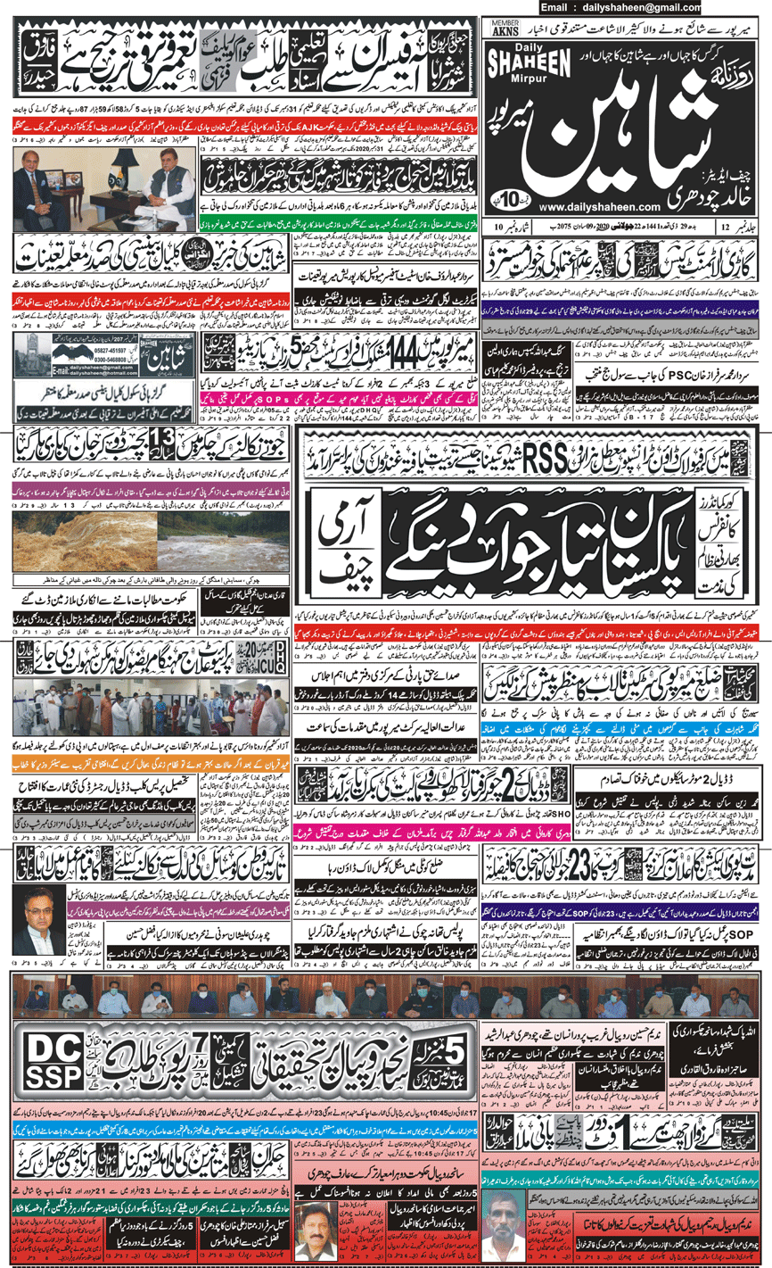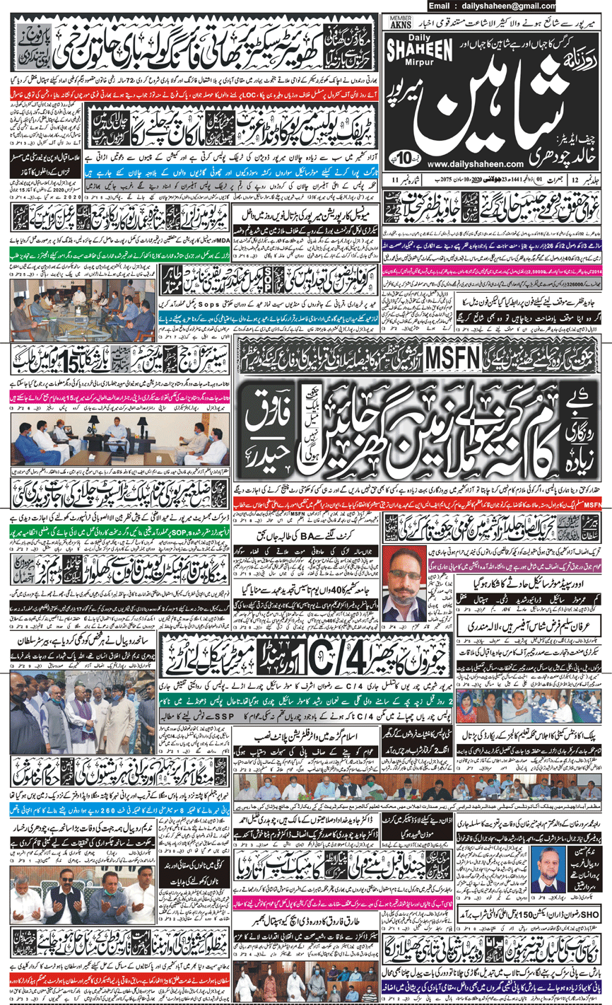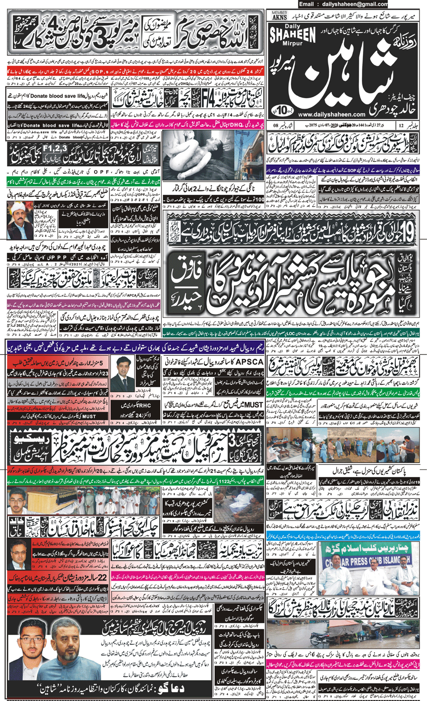 Daily Shaheen Mirpur – Latest news from Mirpur & Azad Kashmir | Mirpur News, Mirpur Newspaper