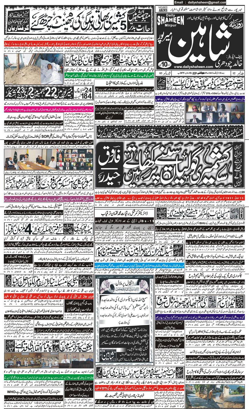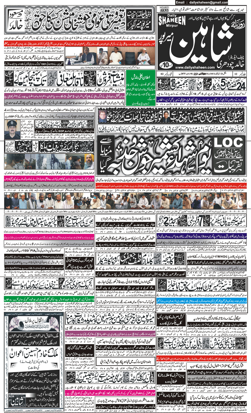 Daily Shaheen Mirpur – Latest news from Mirpur & Azad Kashmir | Mirpur News, Mirpur Newspaper