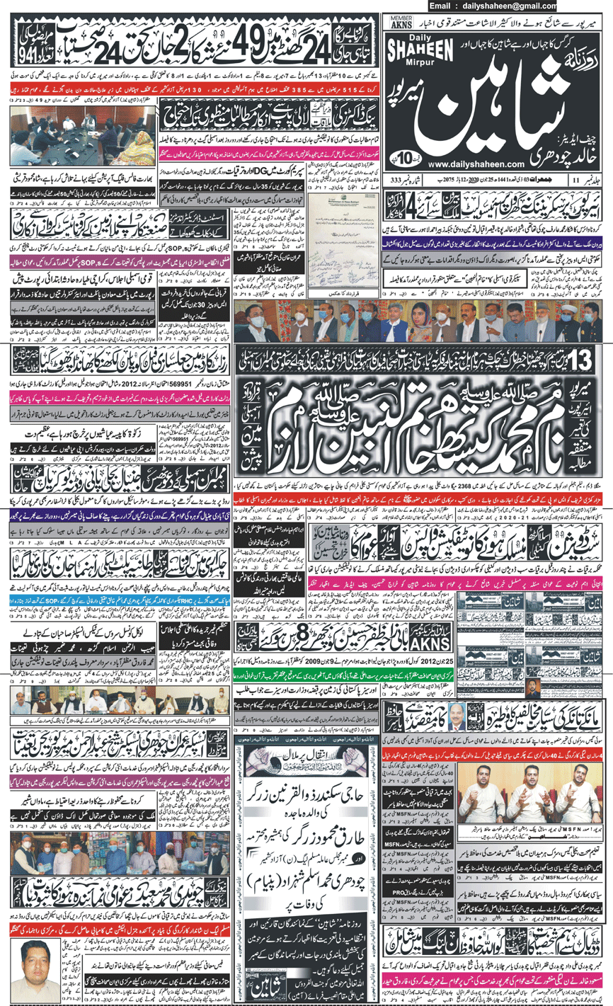 Daily Shaheen Mirpur – Latest news from Mirpur & Azad Kashmir | Mirpur News, Mirpur Newspaper
