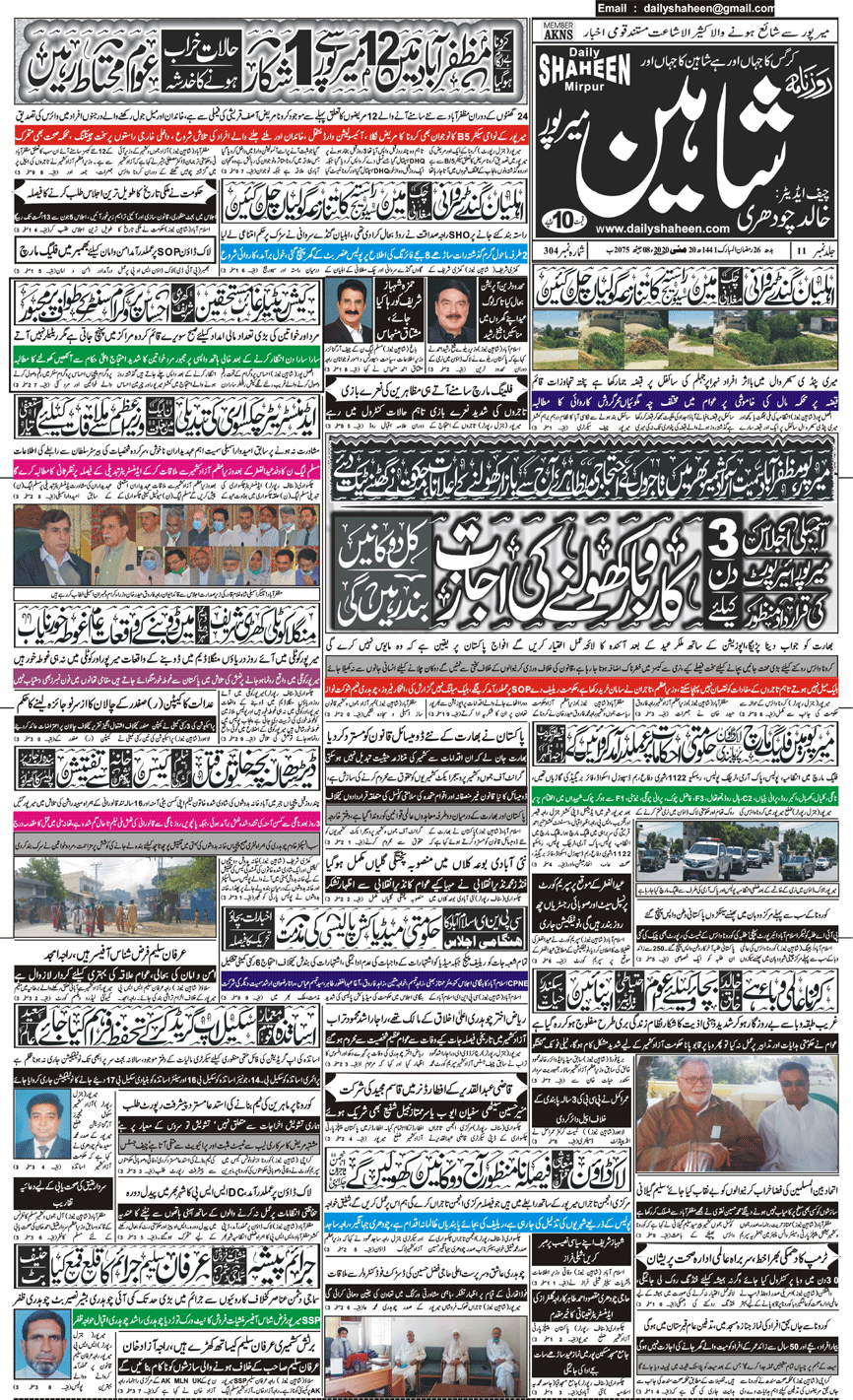 Daily Shaheen Mirpur – Latest news from Mirpur & Azad Kashmir | Mirpur News, Mirpur Newspaper
