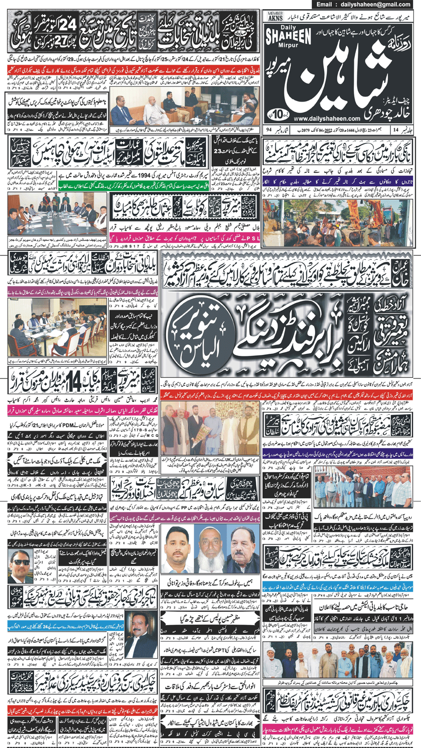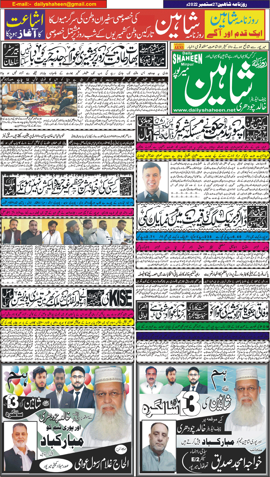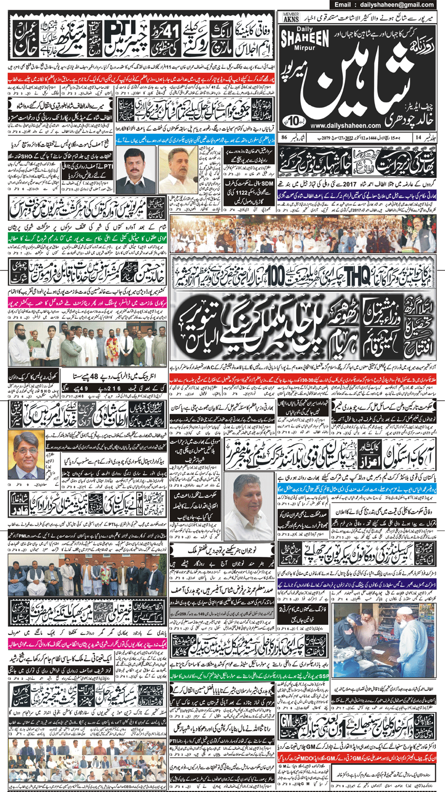 Daily Shaheen Mirpur – Latest news from Mirpur & Azad Kashmir | Mirpur News, Mirpur Newspaper