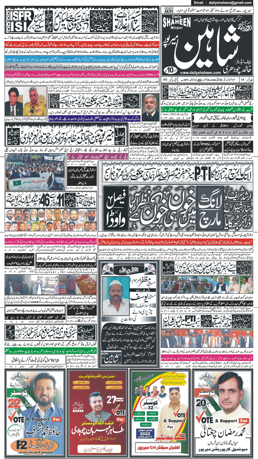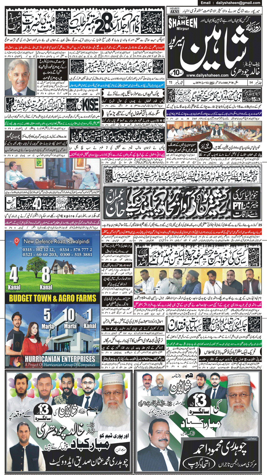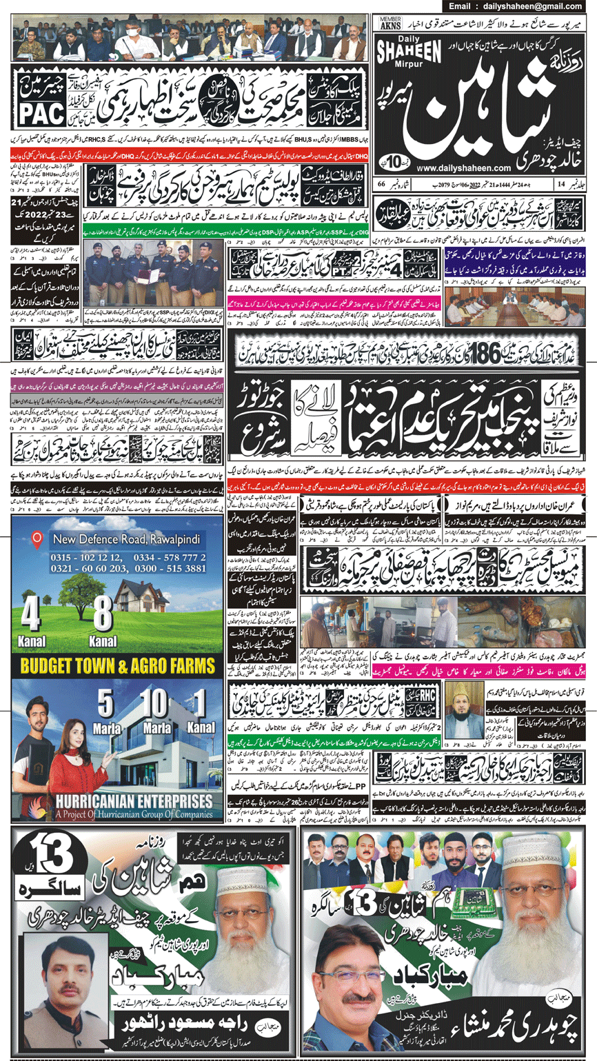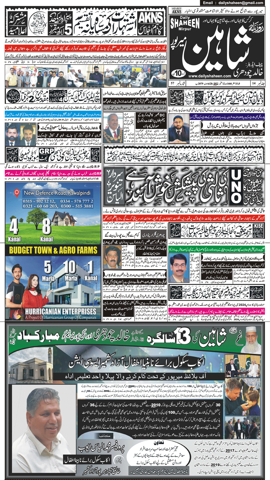 Daily Shaheen Mirpur – Latest news from Mirpur & Azad Kashmir | Mirpur News, Mirpur Newspaper