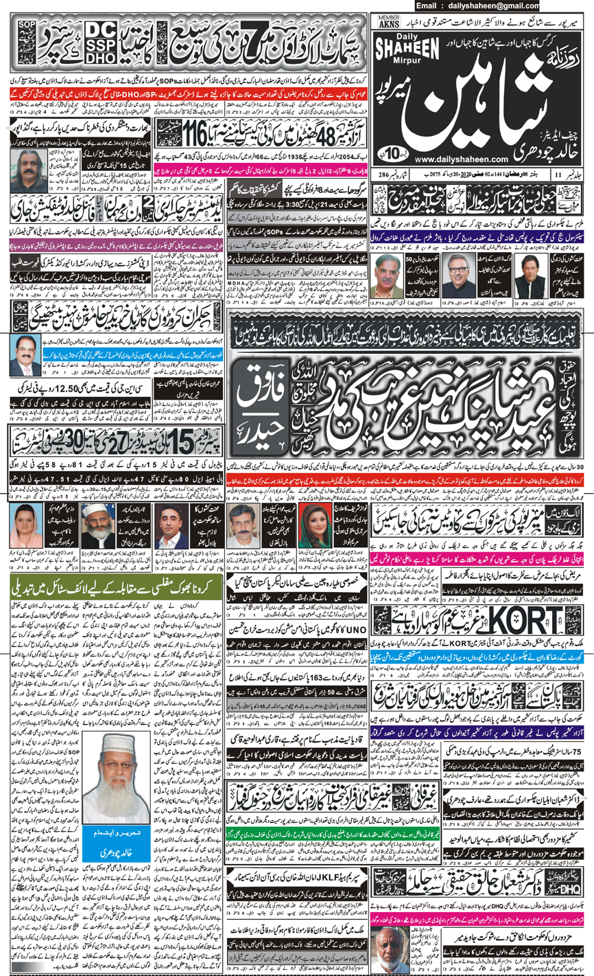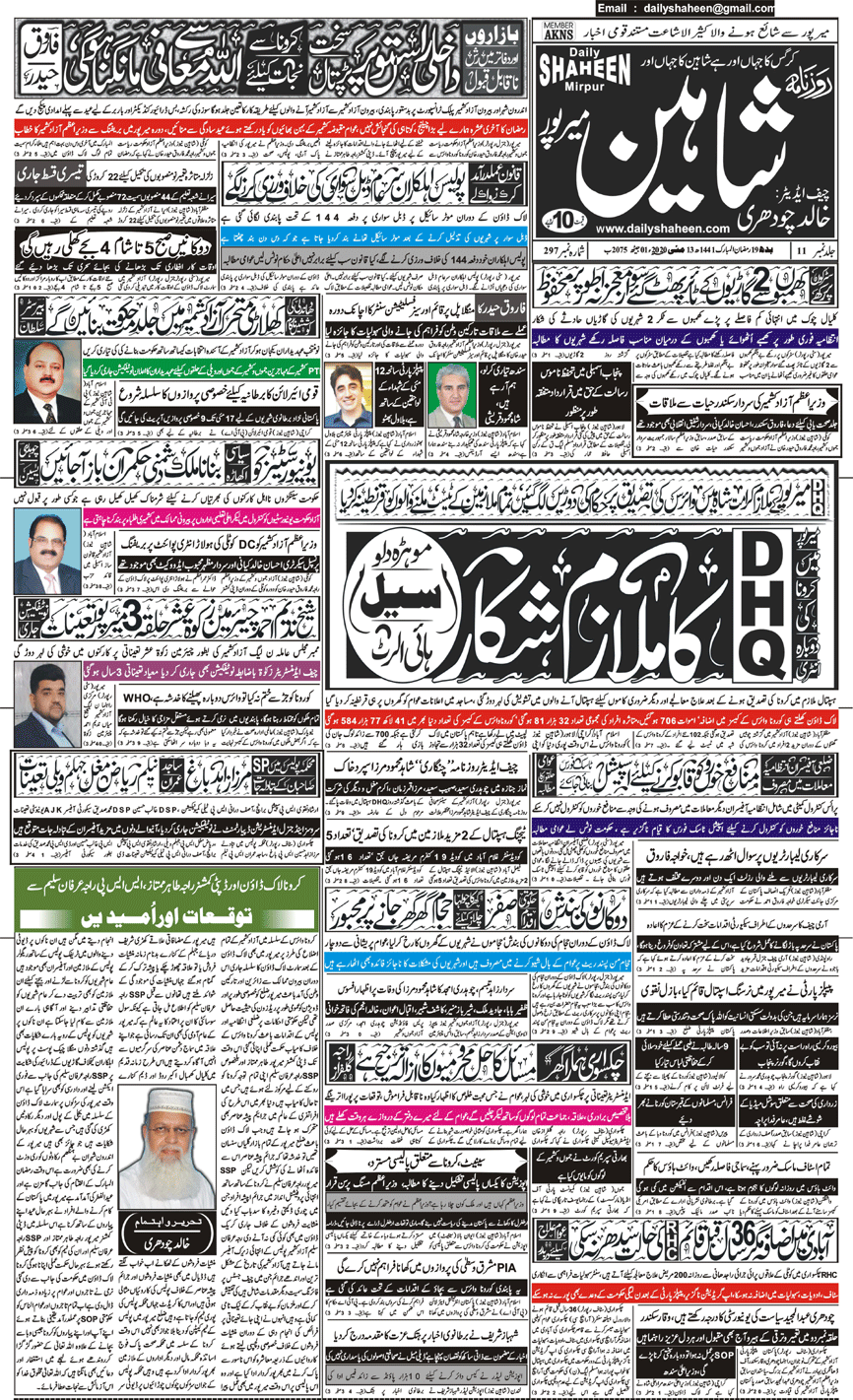 Daily Shaheen Mirpur – Latest news from Mirpur & Azad Kashmir | Mirpur News, Mirpur Newspaper