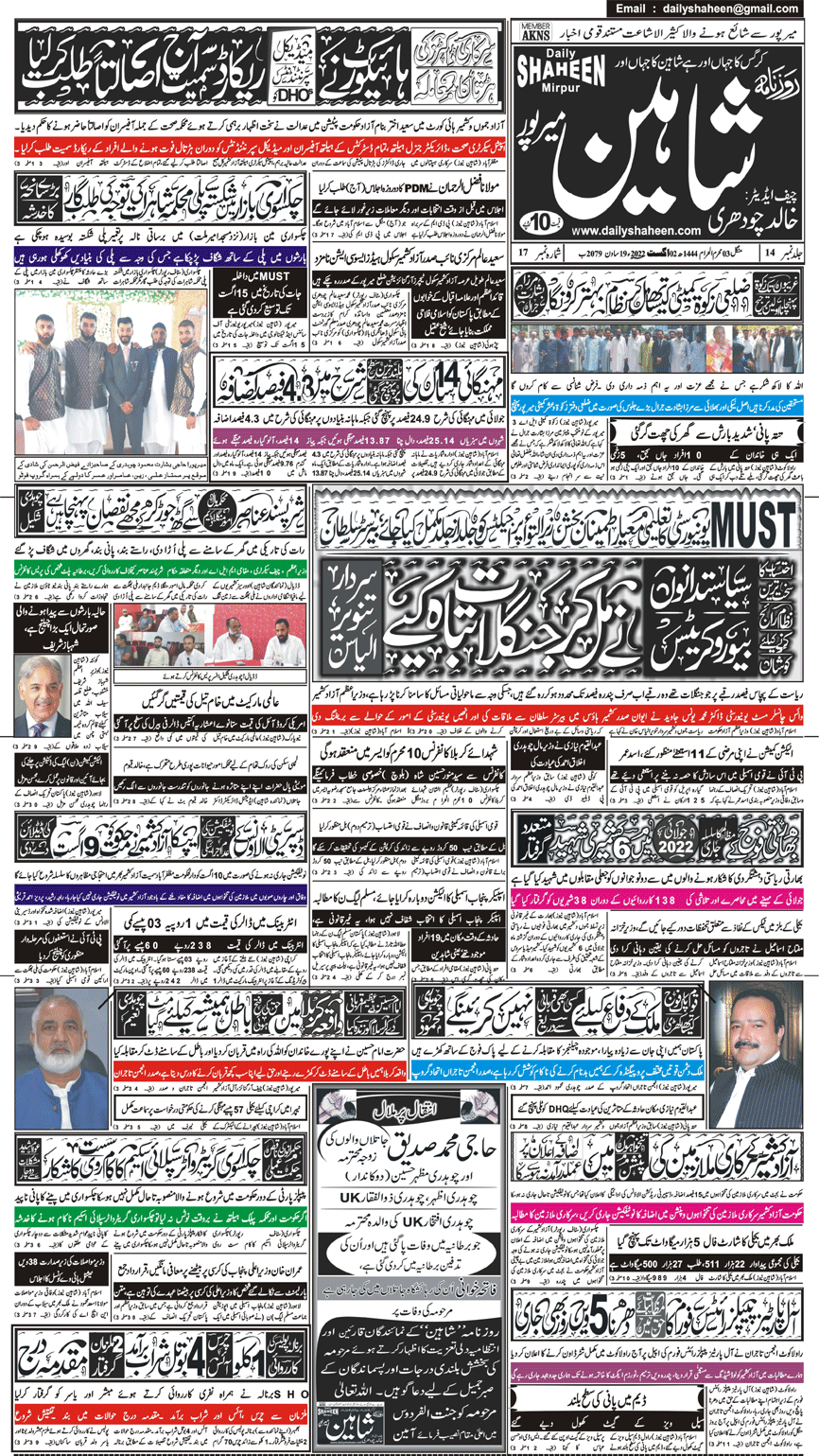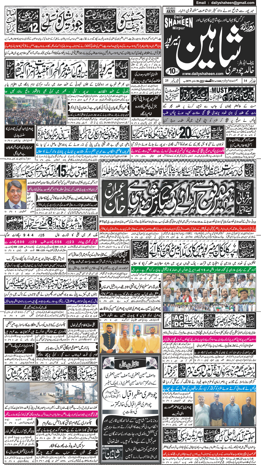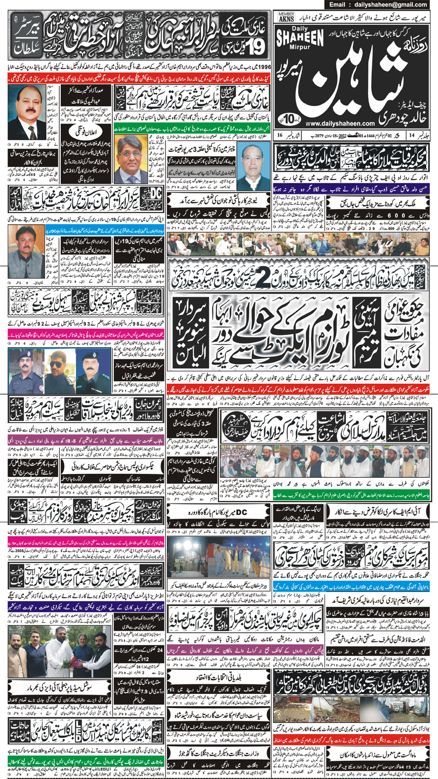 Daily Shaheen Mirpur – Latest news from Mirpur & Azad Kashmir | Mirpur News, Mirpur Newspaper