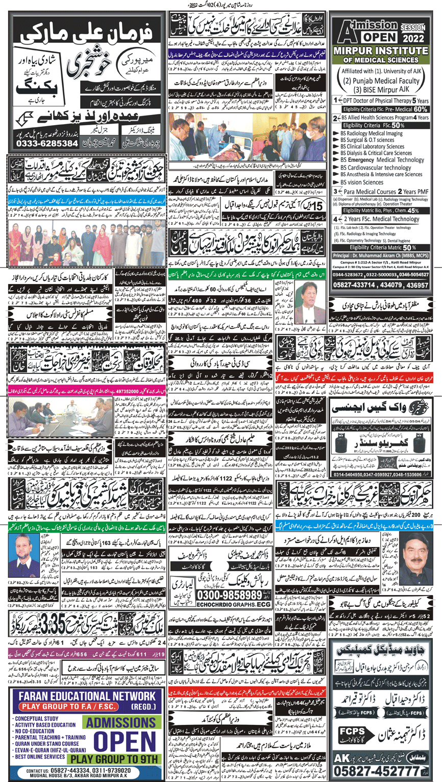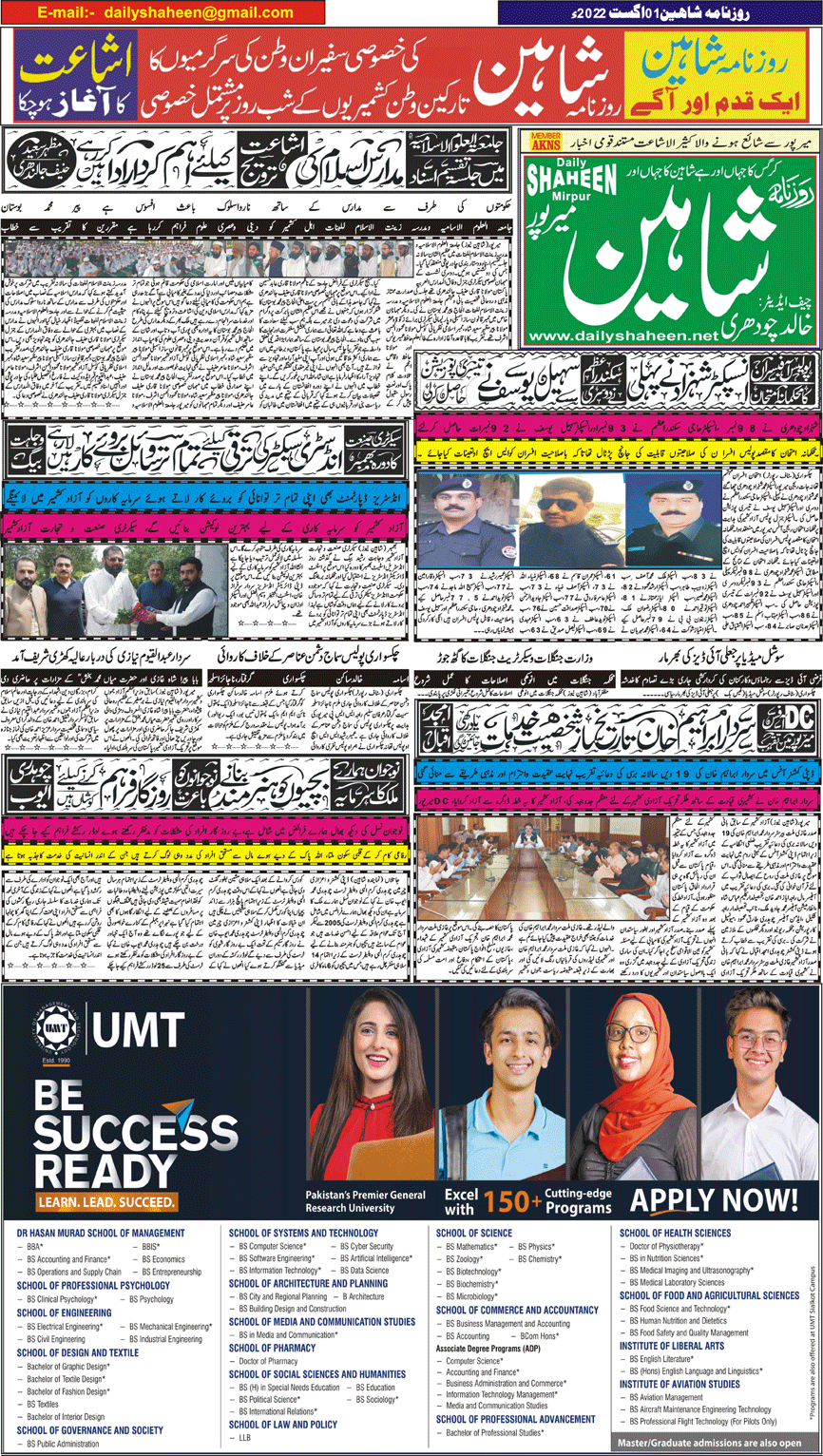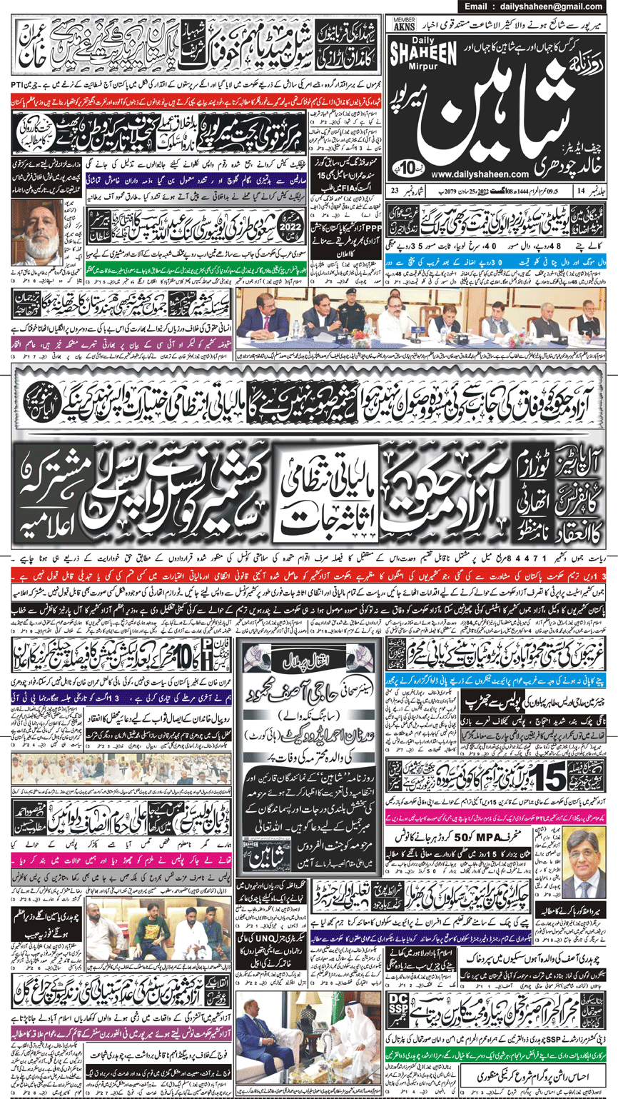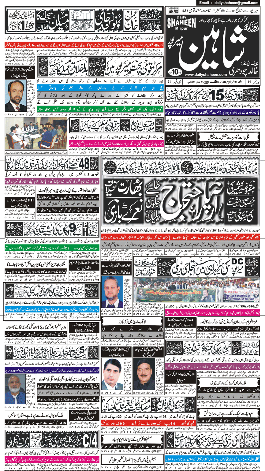 Daily Shaheen Mirpur – Latest news from Mirpur & Azad Kashmir | Mirpur News, Mirpur Newspaper